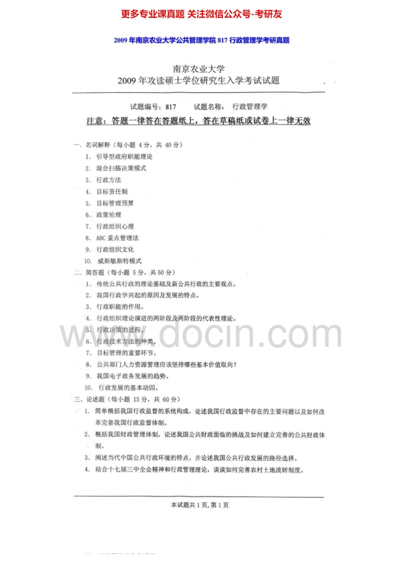 南京农业大学817行政管理学2004、2006-2009、2011考研真题汇编.Image.Marked猴哥6个月前发布关注私信2.77MB12页09649南京农业大学817行政管理学2004、2006-2009、2011考研真题汇编.Image.Marked此内容为免费资源,请登录后查看¥0 登录查看免费资源 第1页 / 共12页 第2页 / 共12页 第3页 / 共12页 该文档为免费文档,您可直接下载完整版进行阅读 © 版权声明文章版权归作者所有,未经允许请勿转载。THE END考研专业课 喜欢就支持一下吧点赞49赞赏 分享QQ空间微博QQ好友海报分享复制链接收藏