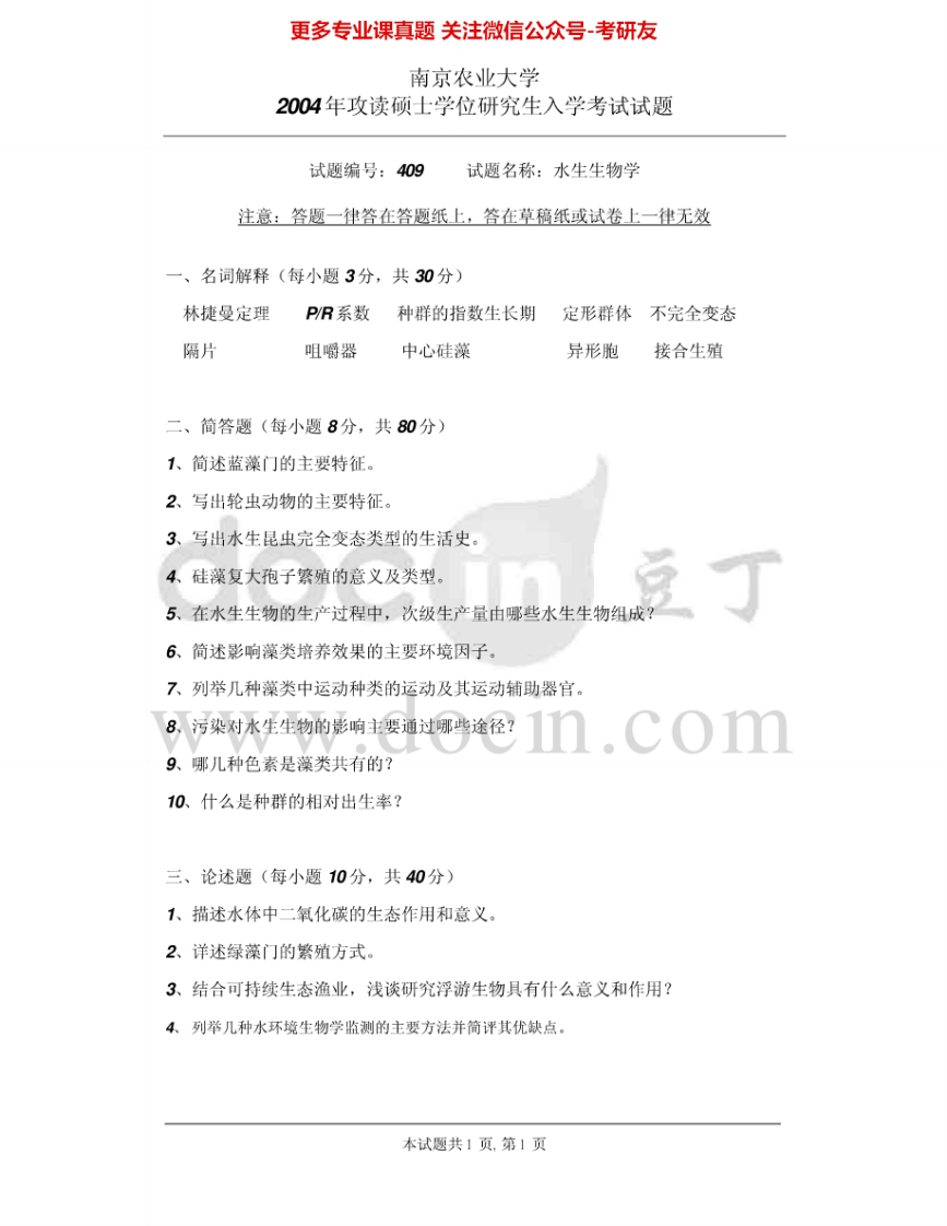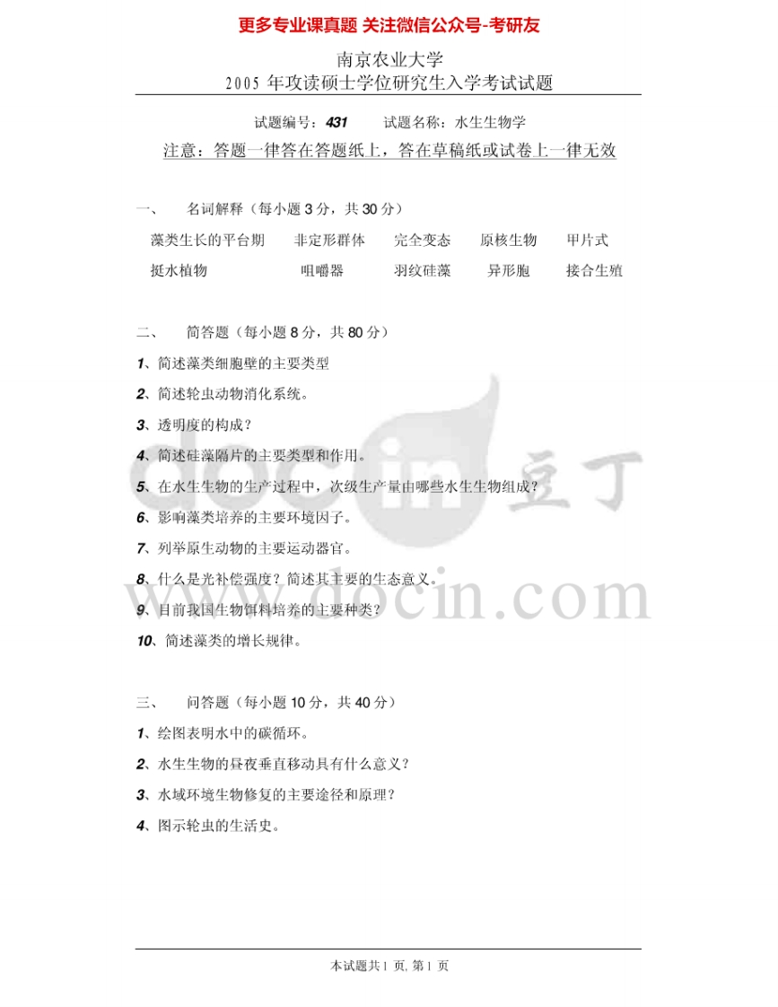 南京农业大学831水生生物学2003-2009考研真题汇编.Image.Marked猴哥6个月前发布关注私信0.95MB7页07018南京农业大学831水生生物学2003-2009考研真题汇编.Image.Marked此内容为免费资源,请登录后查看¥0 登录查看免费资源 第1页 / 共7页 第2页 / 共7页 第3页 / 共7页 该文档为免费文档,您可直接下载完整版进行阅读 © 版权声明文章版权归作者所有,未经允许请勿转载。THE END考研专业课 喜欢就支持一下吧点赞18赞赏 分享QQ空间微博QQ好友海报分享复制链接收藏