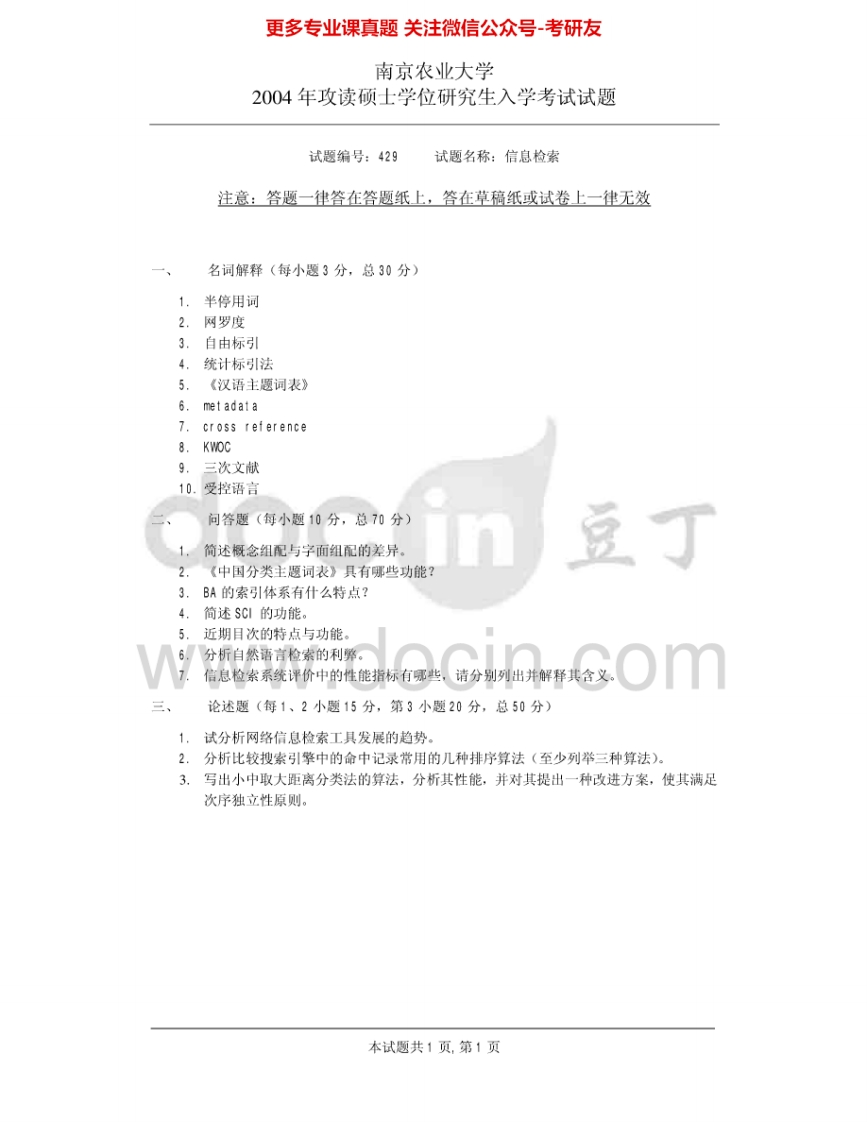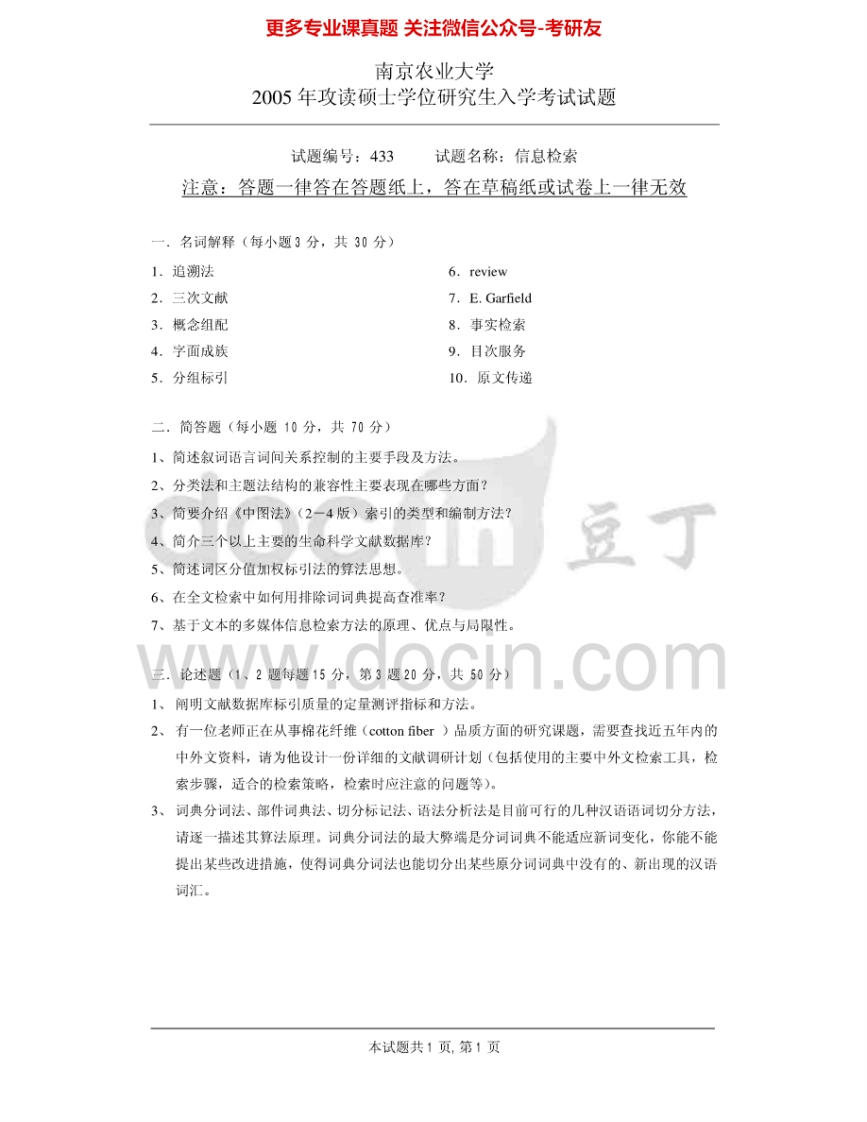 南京农业大学833信息检索2003-2009考研真题汇编.Image.Marked猴哥6个月前发布关注私信1.18MB9页04921南京农业大学833信息检索2003-2009考研真题汇编.Image.Marked此内容为免费资源,请登录后查看¥0 登录查看免费资源 第1页 / 共9页 第2页 / 共9页 第3页 / 共9页 该文档为免费文档,您可直接下载完整版进行阅读 © 版权声明文章版权归作者所有,未经允许请勿转载。THE END《南京农业大学》(833)信息组织与检索考研资料考研专业课 喜欢就支持一下吧点赞21赞赏 分享QQ空间微博QQ好友海报分享复制链接收藏