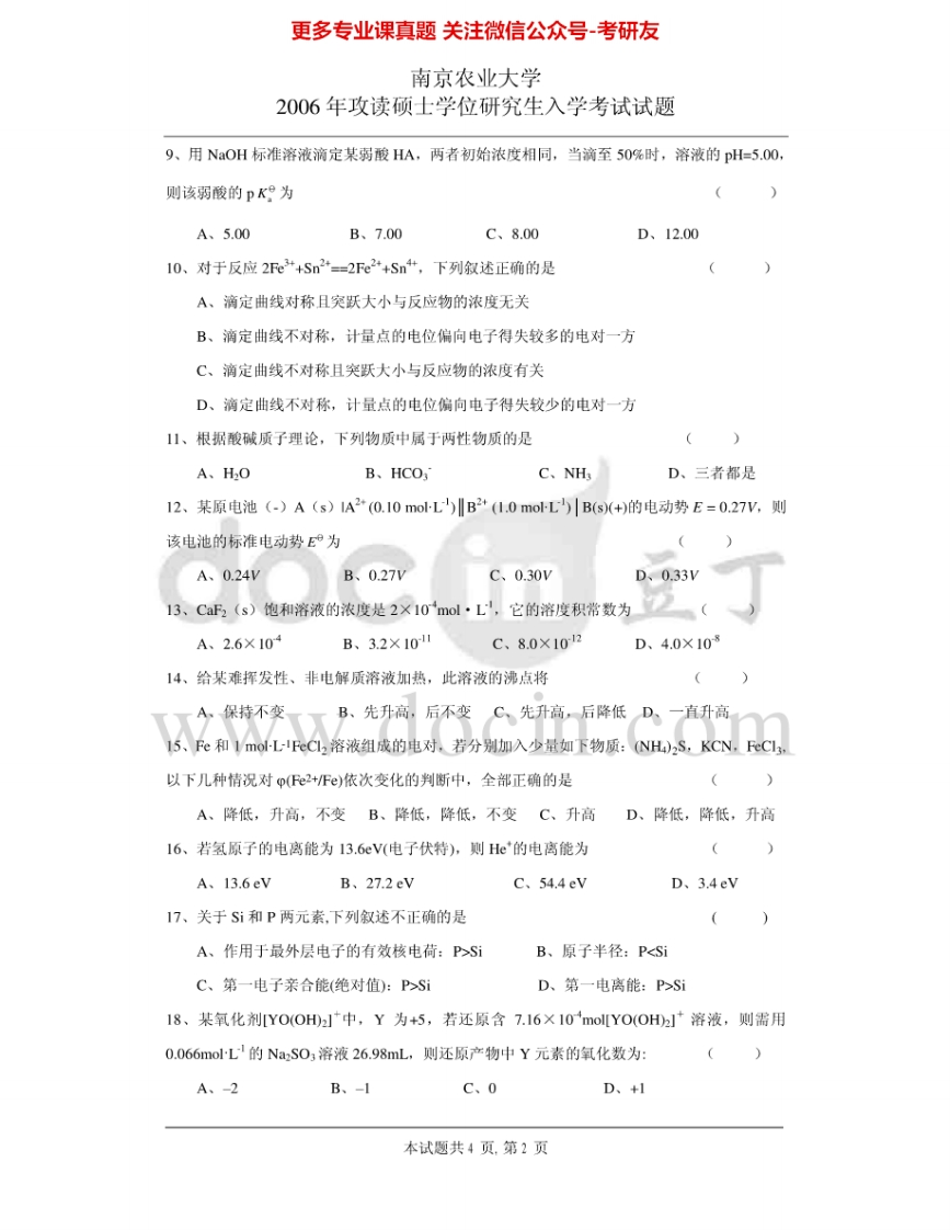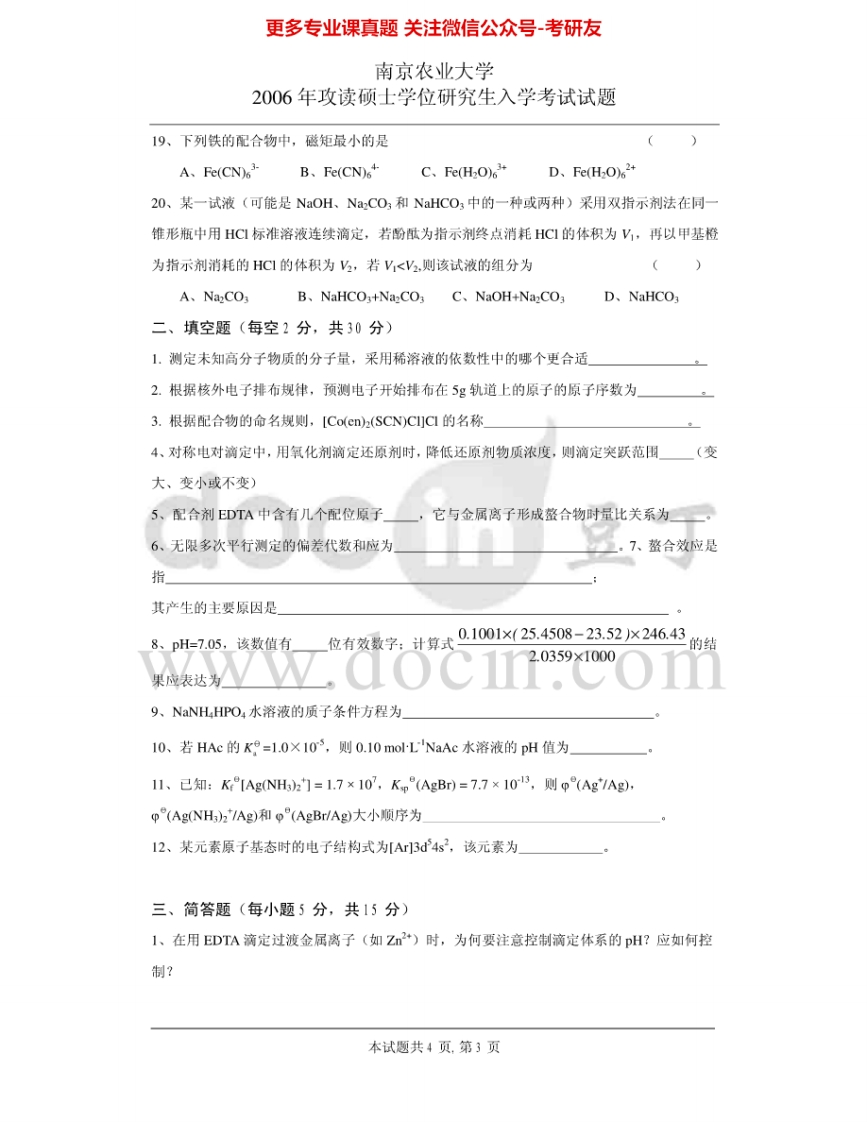 南京农业大学633无机及分析化学一06、08-09分化01-09无化04、08考研真题汇编.Image.Marked猴哥6个月前发布关注私信13.71MB57页04345南京农业大学633无机及分析化学一06、08-09分化01-09无化04、08考研真题汇编.Image.Marked此内容为免费资源,请登录后查看¥0 登录查看免费资源 第1页 / 共57页 第2页 / 共57页 第3页 / 共57页 该文档为免费文档,您可直接下载完整版进行阅读 © 版权声明文章版权归作者所有,未经允许请勿转载。THE END《南京农业大学》(633)有机化学考研资料考研专业课 喜欢就支持一下吧点赞45赞赏 分享QQ空间微博QQ好友海报分享复制链接收藏