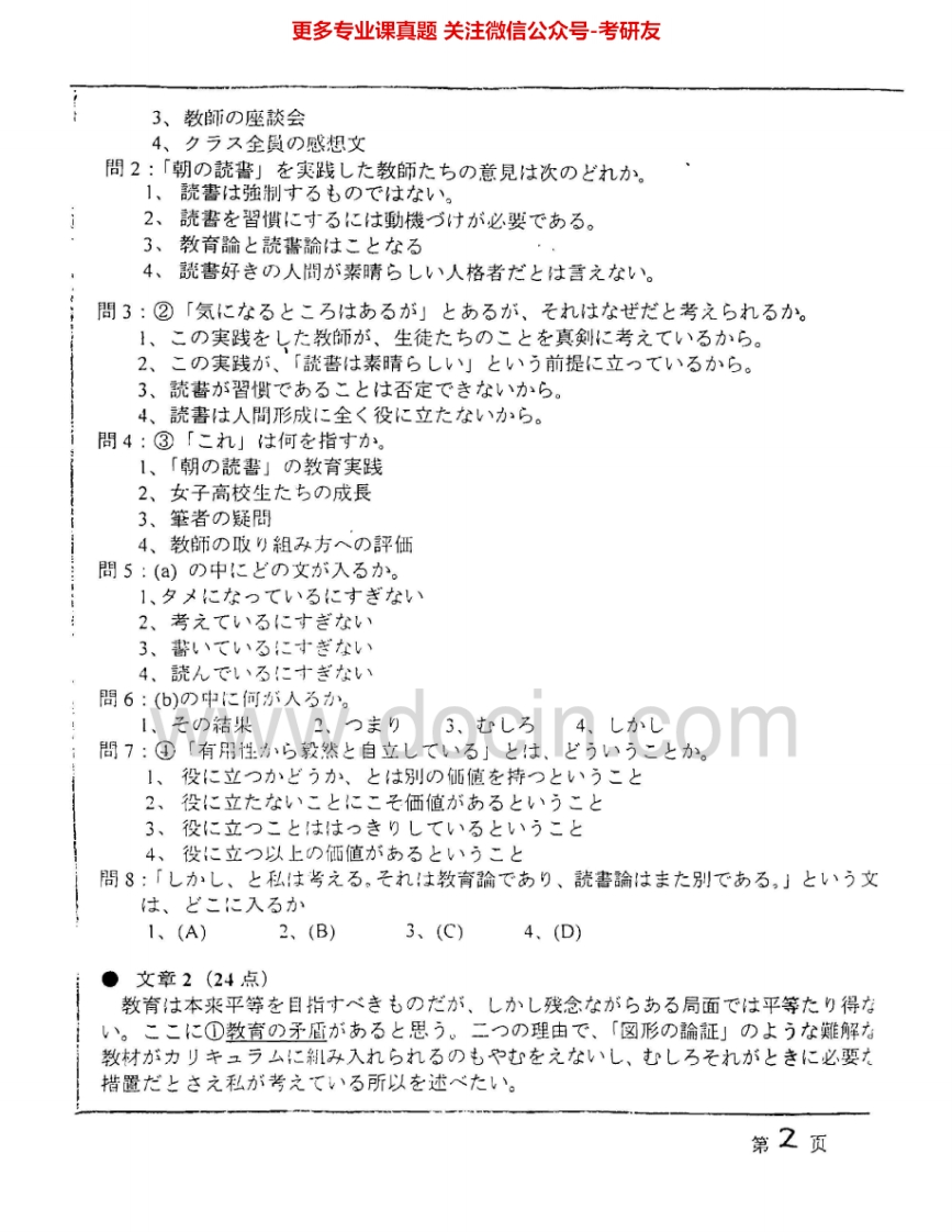 南京农业大学835日语读解与写作2002-2009考研真题汇编.Image.Marked猴哥6个月前发布关注私信12.17MB49页05719南京农业大学835日语读解与写作2002-2009考研真题汇编.Image.Marked此内容为免费资源,请登录后查看¥0 登录查看免费资源 第1页 / 共49页 第2页 / 共49页 第3页 / 共49页 该文档为免费文档,您可直接下载完整版进行阅读 © 版权声明文章版权归作者所有,未经允许请勿转载。THE END考研专业课 喜欢就支持一下吧点赞19赞赏 分享QQ空间微博QQ好友海报分享复制链接收藏
