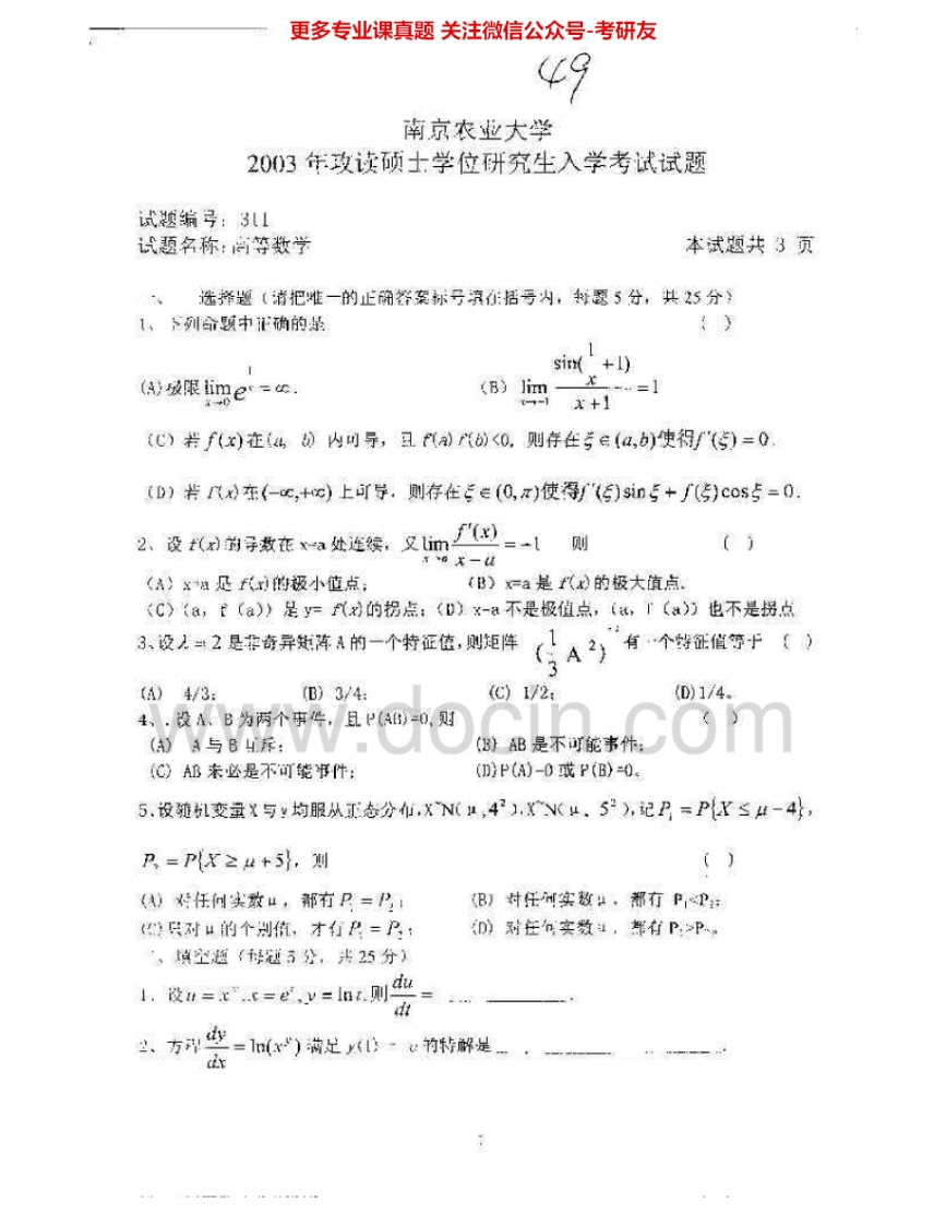 南京农业大学822高等代数2001、2003-2009考研真题汇编.Image.Marked猴哥6个月前发布关注私信2.63MB16页07949南京农业大学822高等代数2001、2003-2009考研真题汇编.Image.Marked此内容为免费资源,请登录后查看¥0 登录查看免费资源 第1页 / 共16页 第2页 / 共16页 第3页 / 共16页 该文档为免费文档,您可直接下载完整版进行阅读 © 版权声明文章版权归作者所有,未经允许请勿转载。THE END《南京农业大学》(822)高等代数考研资料考研专业课 喜欢就支持一下吧点赞49赞赏 分享QQ空间微博QQ好友海报分享复制链接收藏