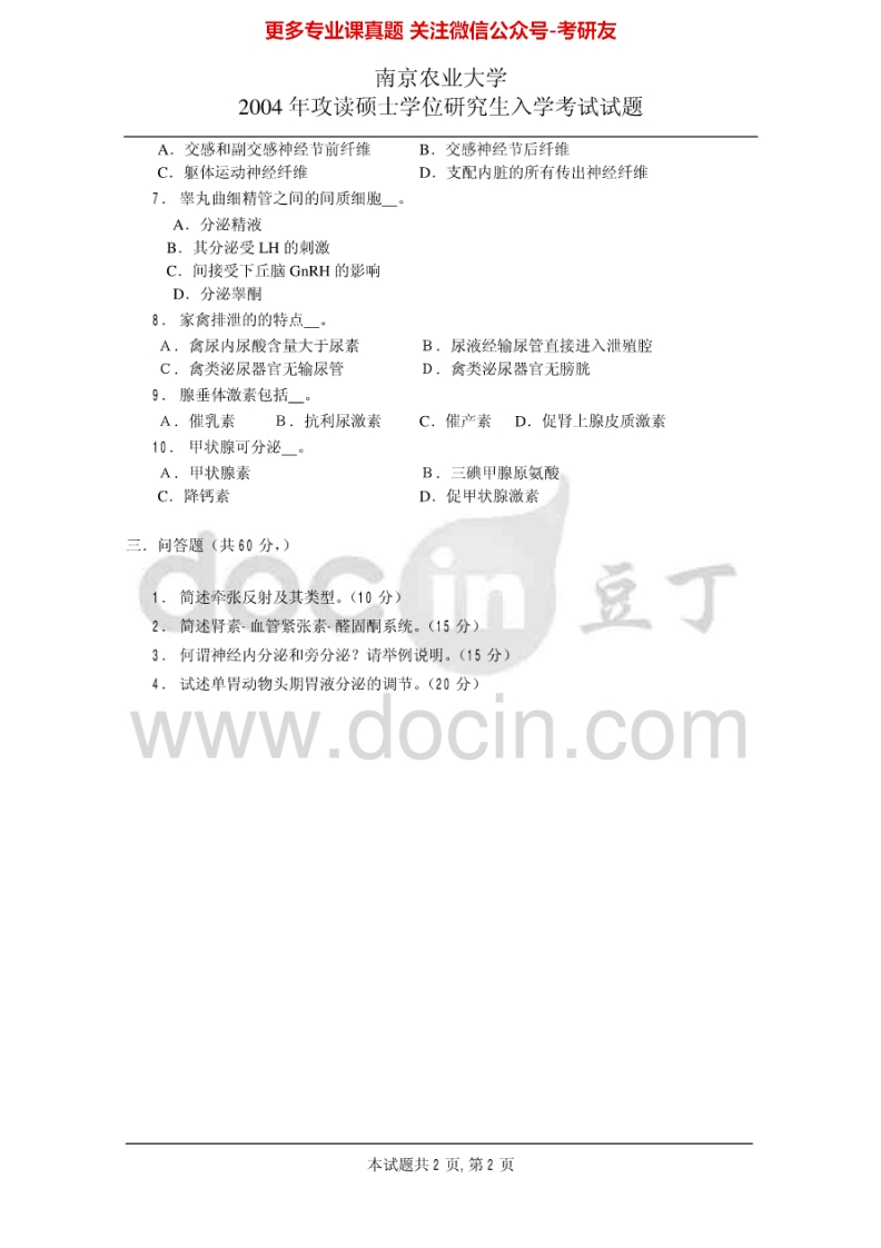 南京农业大学动物生理学历年真题2004考研真题汇编.Image.Marked猴哥6个月前发布关注私信0.12MB2页04657南京农业大学动物生理学历年真题2004考研真题汇编.Image.Marked此内容为免费资源,请登录后查看¥0 登录查看免费资源 第1页 / 共2页 第2页 / 共2页 已完成全部阅读,共2页 © 版权声明文章版权归作者所有,未经允许请勿转载。THE END考研专业课 喜欢就支持一下吧点赞57赞赏 分享QQ空间微博QQ好友海报分享复制链接收藏