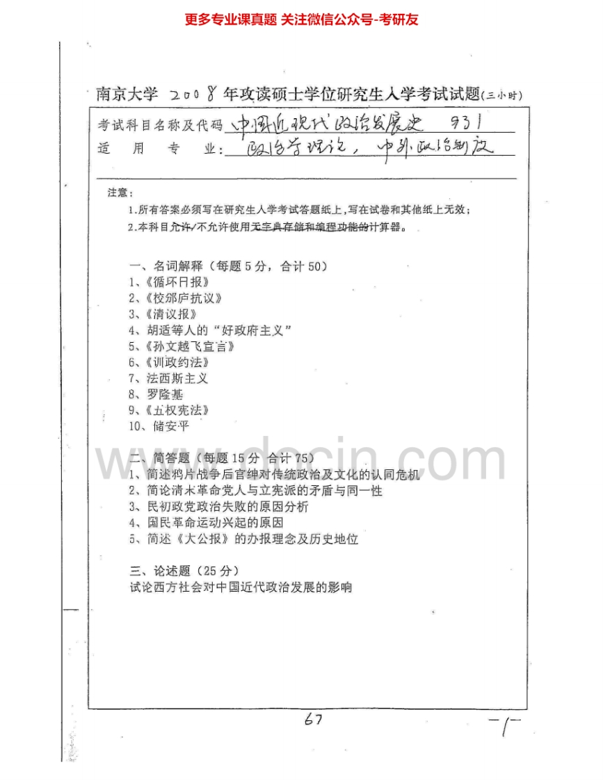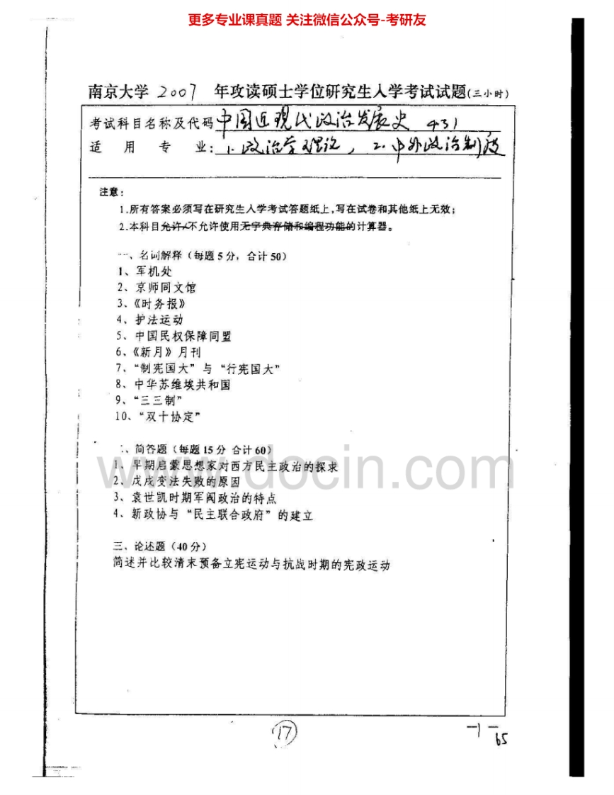 南京大学931中国近现代政治发展史2006-2009考研真题汇编.Image.Marked猴哥6个月前发布关注私信0.85MB4页07463南京大学931中国近现代政治发展史2006-2009考研真题汇编.Image.Marked此内容为免费资源,请登录后查看¥0 登录查看免费资源 第1页 / 共4页 第2页 / 共4页 第3页 / 共4页 该文档为免费文档,您可直接下载完整版进行阅读 © 版权声明文章版权归作者所有,未经允许请勿转载。THE END考研专业课 喜欢就支持一下吧点赞63赞赏 分享QQ空间微博QQ好友海报分享复制链接收藏