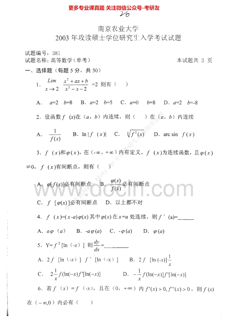 南京农业大学高等数学2002-2009考研真题汇编.Image.Marked猴哥6个月前发布关注私信4.79MB26页06510南京农业大学高等数学2002-2009考研真题汇编.Image.Marked此内容为免费资源,请登录后查看¥0 登录查看免费资源 第1页 / 共26页 第2页 / 共26页 第3页 / 共26页 该文档为免费文档,您可直接下载完整版进行阅读 © 版权声明文章版权归作者所有,未经允许请勿转载。THE END考研专业课 喜欢就支持一下吧点赞10赞赏 分享QQ空间微博QQ好友海报分享复制链接收藏