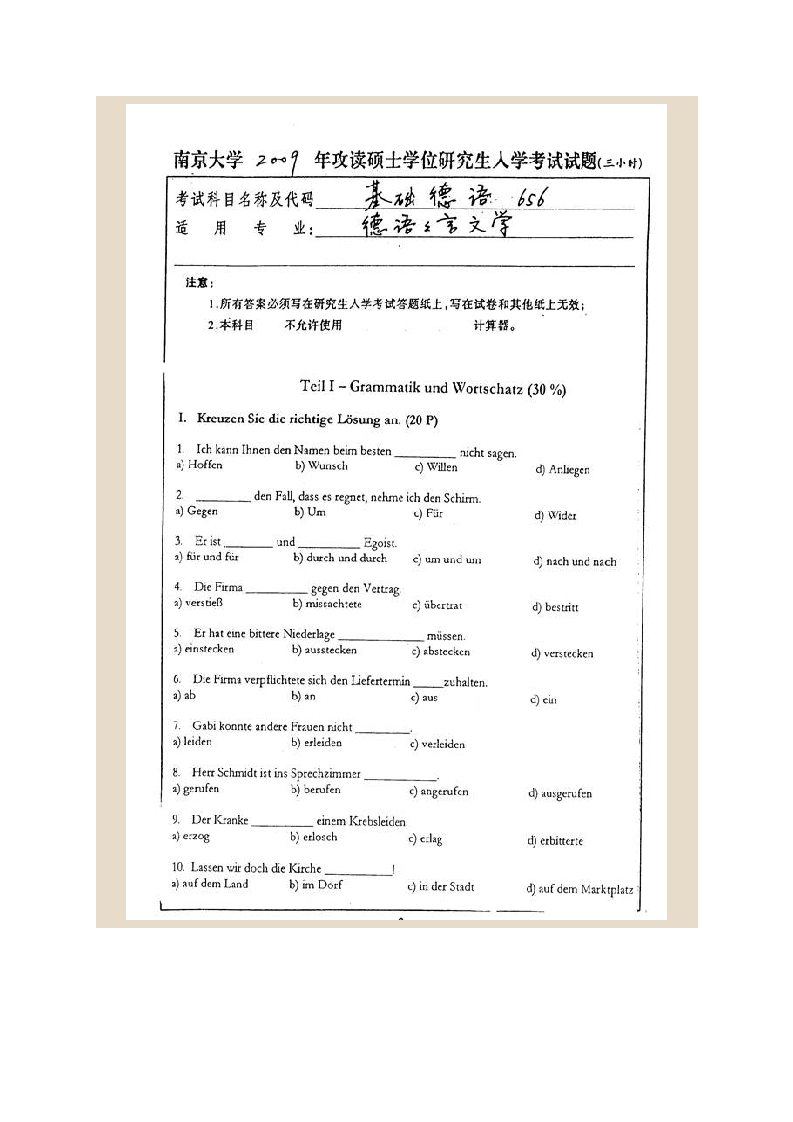 南京大学外国语学院656基础德语历年考研真题汇编猴哥6个月前发布关注私信4.48MB61页03412南京大学外国语学院656基础德语历年考研真题汇编此内容为免费资源,请登录后查看¥0 登录查看免费资源 第1页 / 共61页 第2页 / 共61页 第3页 / 共61页 该文档为免费文档,您可直接下载完整版进行阅读 © 版权声明文章版权归作者所有,未经允许请勿转载。THE END考研专业课 喜欢就支持一下吧点赞12赞赏 分享QQ空间微博QQ好友海报分享复制链接收藏