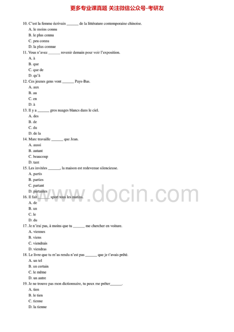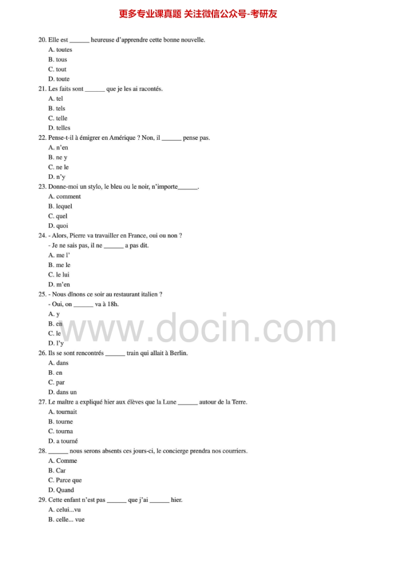 南京大学二外法语2008-2009年考研真题及参考答案.Image.Marked猴哥6个月前发布关注私信2.99MB11页08118南京大学二外法语2008-2009年考研真题及参考答案.Image.Marked此内容为免费资源,请登录后查看¥0 登录查看免费资源 第1页 / 共11页 第2页 / 共11页 第3页 / 共11页 该文档为免费文档,您可直接下载完整版进行阅读 © 版权声明文章版权归作者所有,未经允许请勿转载。THE END考研专业课 喜欢就支持一下吧点赞18赞赏 分享QQ空间微博QQ好友海报分享复制链接收藏