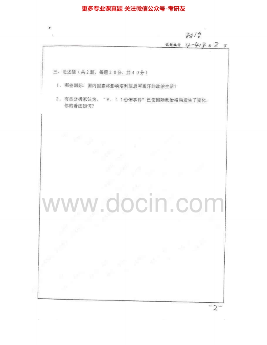 南京大学948国际政治学2000-2009考研真题汇编.Image.Marked猴哥6个月前发布关注私信2.60MB10页04026南京大学948国际政治学2000-2009考研真题汇编.Image.Marked此内容为免费资源,请登录后查看¥0 登录查看免费资源 第1页 / 共10页 第2页 / 共10页 第3页 / 共10页 该文档为免费文档,您可直接下载完整版进行阅读 © 版权声明文章版权归作者所有,未经允许请勿转载。THE END《南京大学》(948)国际政治学考研资料考研专业课 喜欢就支持一下吧点赞26赞赏 分享QQ空间微博QQ好友海报分享复制链接收藏