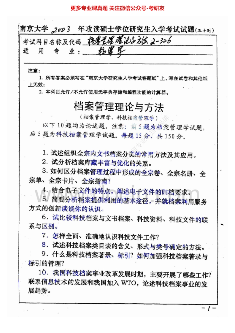 南京大学档案管理理论与方法考研真题汇编.Image.Marked-学习资源网 - 分享优质学习资料