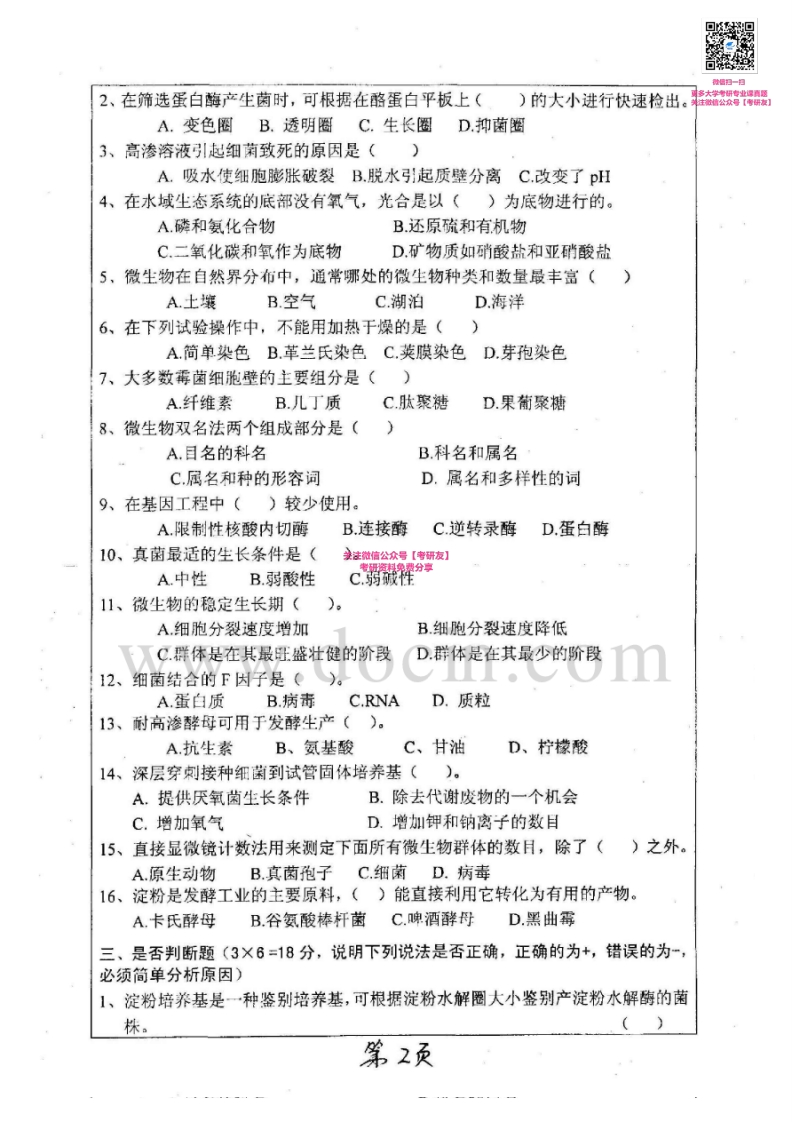 南京工业大学612微生物学2004-2005、2007-2008考研真题汇编猴哥6个月前发布关注私信3.28MB10页07218南京工业大学612微生物学2004-2005、2007-2008考研真题汇编此内容为免费资源,请登录后查看¥0 登录查看免费资源 第1页 / 共10页 第2页 / 共10页 第3页 / 共10页 该文档为免费文档,您可直接下载完整版进行阅读 © 版权声明文章版权归作者所有,未经允许请勿转载。THE END《南京工业大学》(612)微生物学考研资料考研专业课 喜欢就支持一下吧点赞18赞赏 分享QQ空间微博QQ好友海报分享复制链接收藏