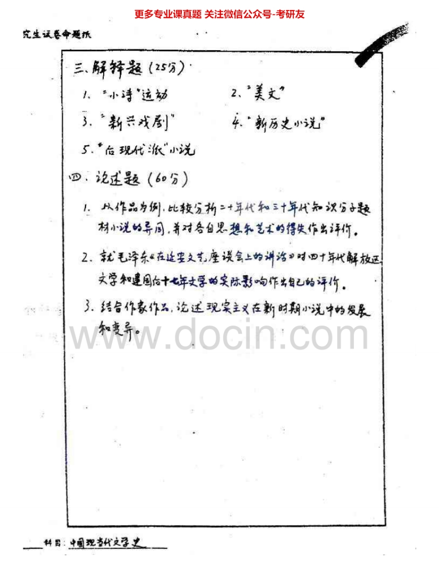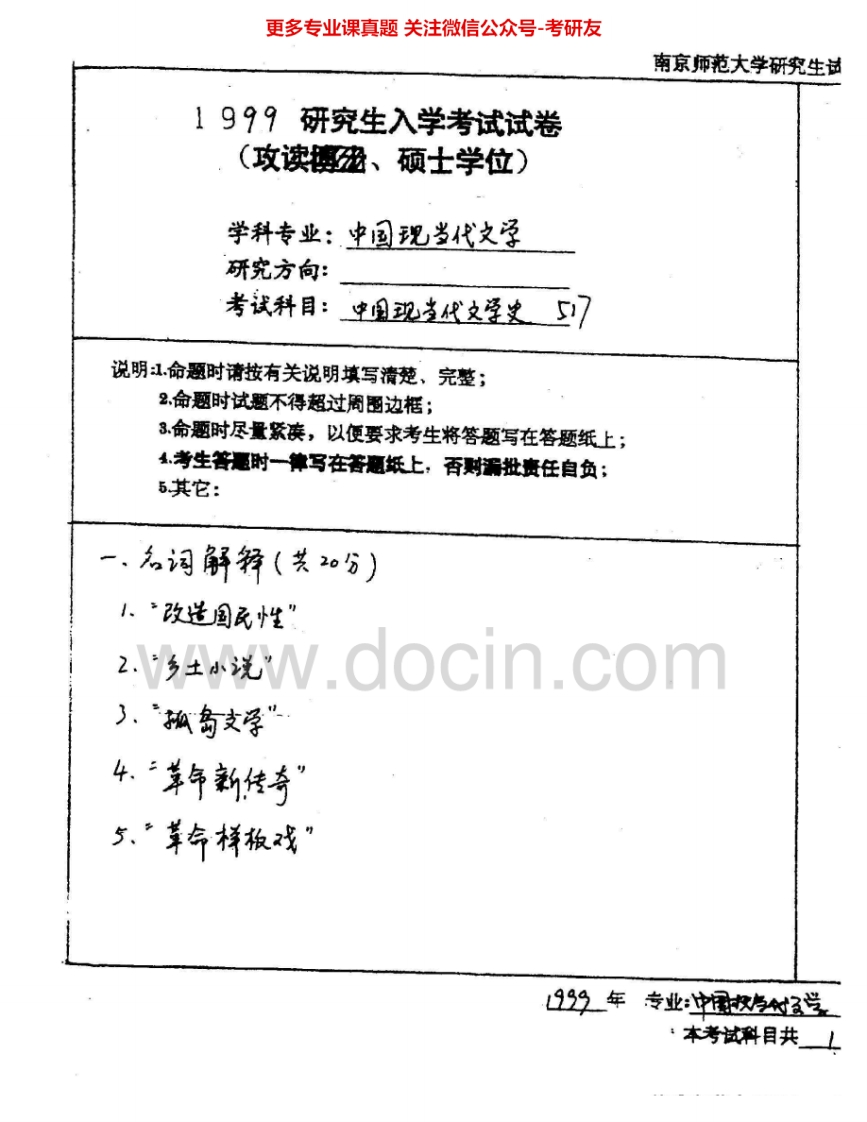 南京师范大学616中国现当代文学史1998-2006、2014考研真题汇编.Image.Marked