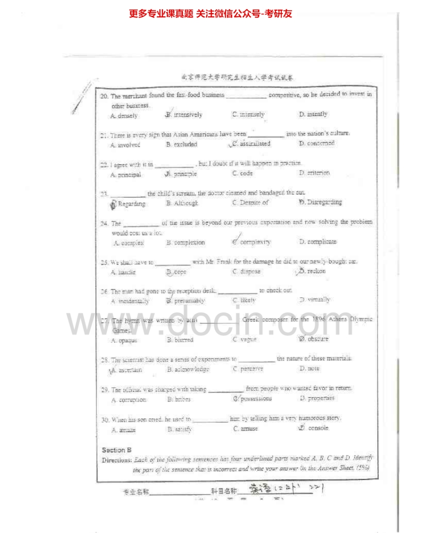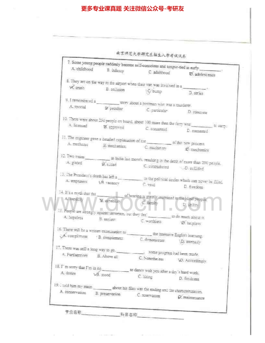 南京师范大学240英语(二外)2003-2011考研真题汇编.Image.Marked猴哥6个月前发布关注私信25.81MB84页04719南京师范大学240英语(二外)2003-2011考研真题汇编.Image.Marked此内容为免费资源,请登录后查看¥0 登录查看免费资源 第1页 / 共84页 第2页 / 共84页 第3页 / 共84页 该文档为免费文档,您可直接下载完整版进行阅读 © 版权声明文章版权归作者所有,未经允许请勿转载。THE END考研专业课 喜欢就支持一下吧点赞19赞赏 分享QQ空间微博QQ好友海报分享复制链接收藏
