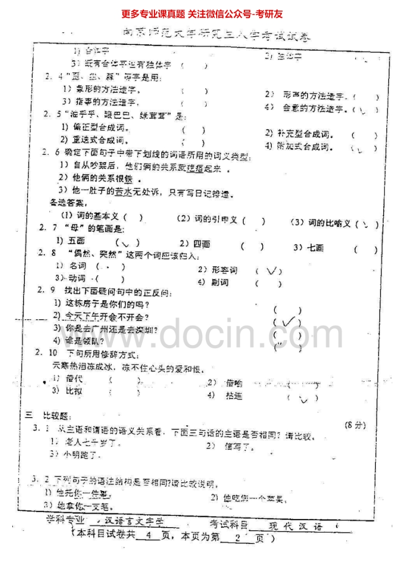 南京师范大学611现代汉语基础2002-2010现代汉语基础2009考研真题汇编.Image.Marked