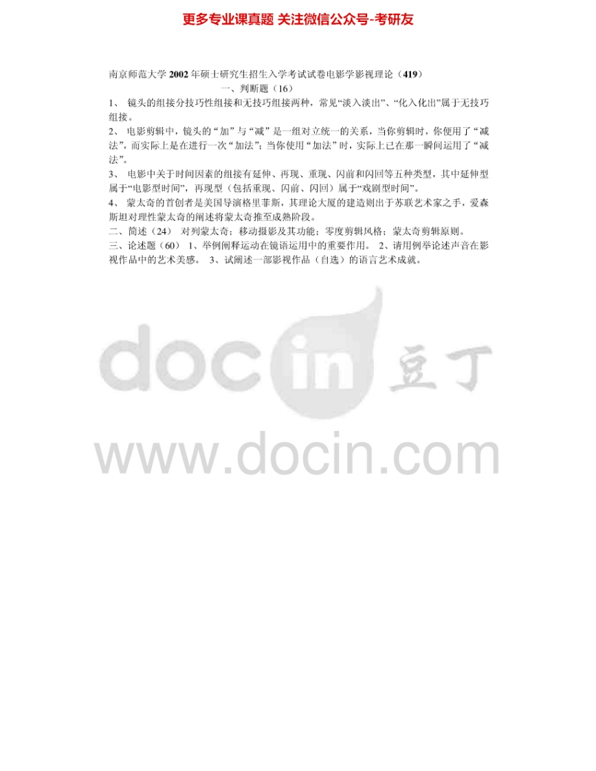 南京师范大学811影视理论2001-2002、2014-2015考研真题汇编.Image.Marked