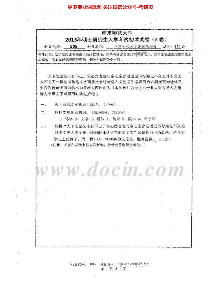 南京师范大学806中国古代文学阅读与写作2014-2015考研真题汇编.Image.Marked猴哥6个月前发布关注私信0.58MB2页09047南京师范大学806中国古代文学阅读与写作2014-2015考研真题汇编.Image.Marked此内容为免费资源,请登录后查看¥0 登录查看免费资源 第1页 / 共2页 第2页 / 共2页 已完成全部阅读,共2页 © 版权声明文章版权归作者所有,未经允许请勿转载。THE END《南京师范大学》(806)影视史论考研资料考研专业课 喜欢就支持一下吧点赞47赞赏 分享QQ空间微博QQ好友海报分享复制链接收藏