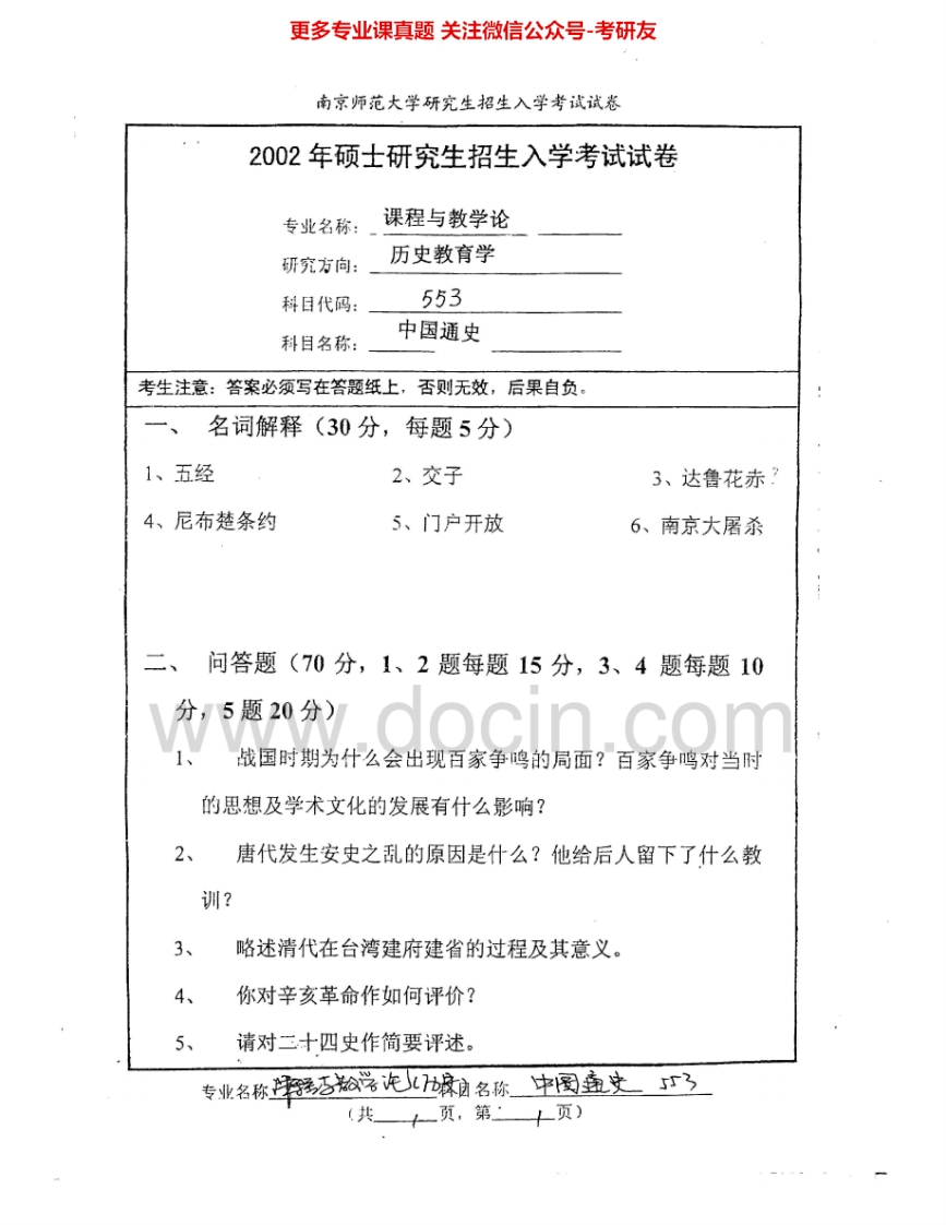 南京师范大学635中国通史2001-2005考研真题汇编.Image.Marked-学习资源网 - 分享优质学习资料