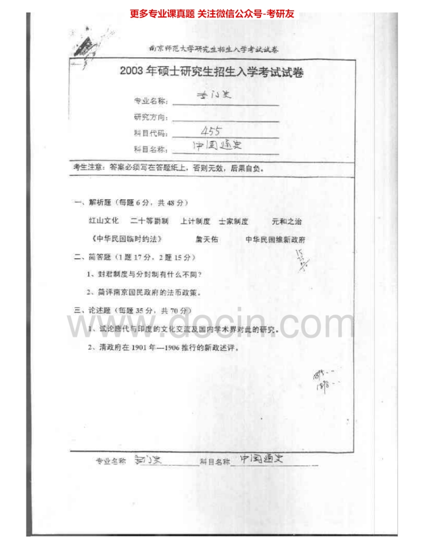 南京师范大学635中国通史2001-2005考研真题汇编.Image.Marked