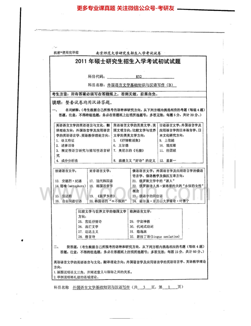 南京师范大学632外国语言文学基础知识与汉语写作2010-2011考研真题汇编.Image.Marked-学习资源网 - 分享优质学习资料