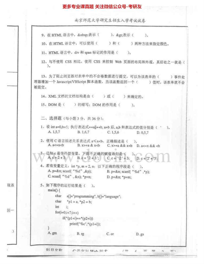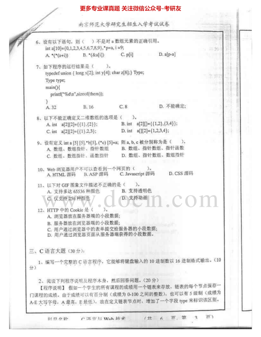 南京师范大学629C语言与WEB技术2005-2010、2012-2015考研真题汇编.Image.Marked-学习资源网 - 分享优质学习资料