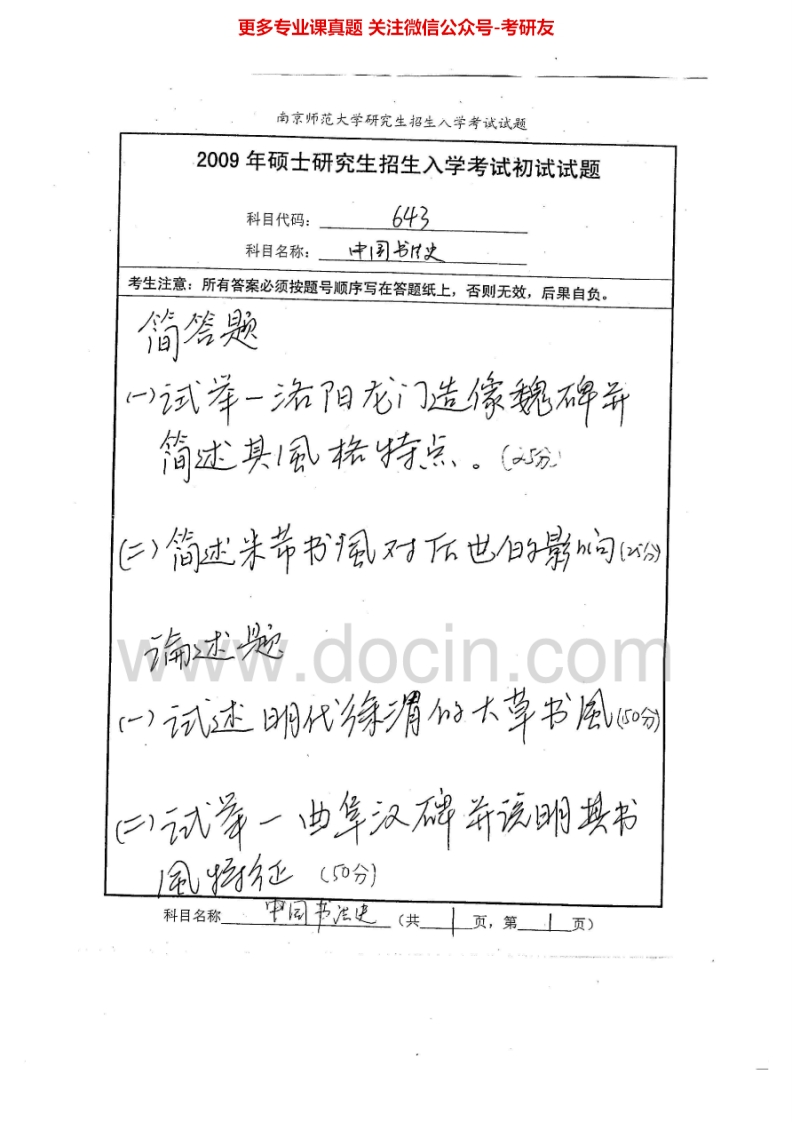 南京师范大学中国书法史2007-2009考研真题汇编.Image.Marked猴哥6个月前发布关注私信0.51MB3页03810南京师范大学中国书法史2007-2009考研真题汇编.Image.Marked此内容为免费资源,请登录后查看¥0 登录查看免费资源 第1页 / 共3页 第2页 / 共3页 第3页 / 共3页 已完成全部阅读,共3页 © 版权声明文章版权归作者所有,未经允许请勿转载。THE END考研专业课 喜欢就支持一下吧点赞10赞赏 分享QQ空间微博QQ好友海报分享复制链接收藏