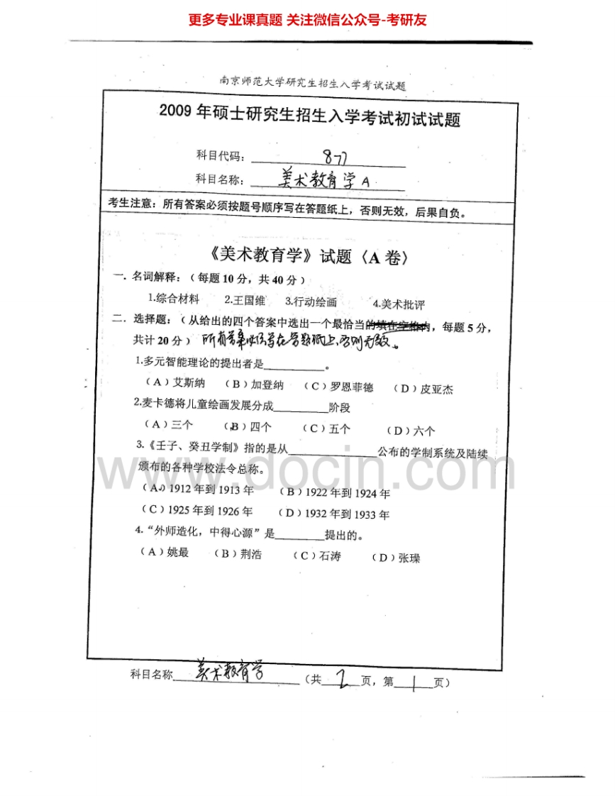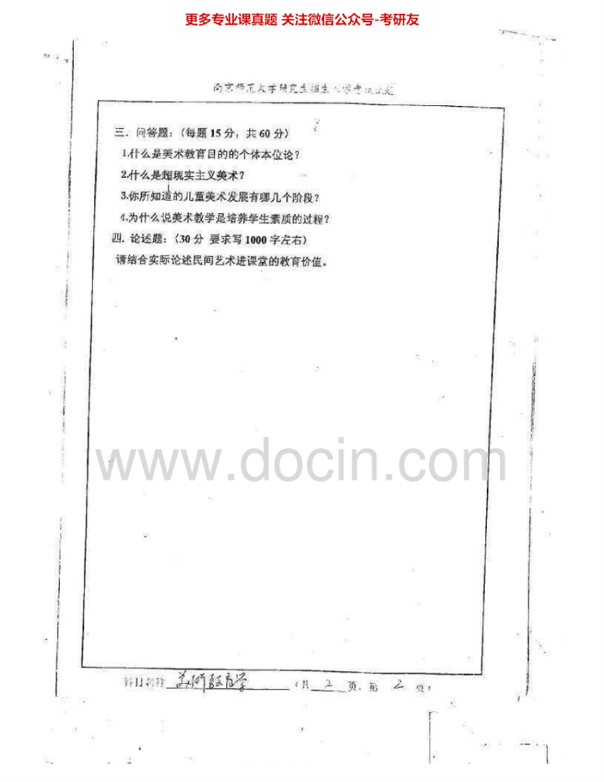 南京师范大学871美术教育学2008-2009考研真题汇编.Image.Marked