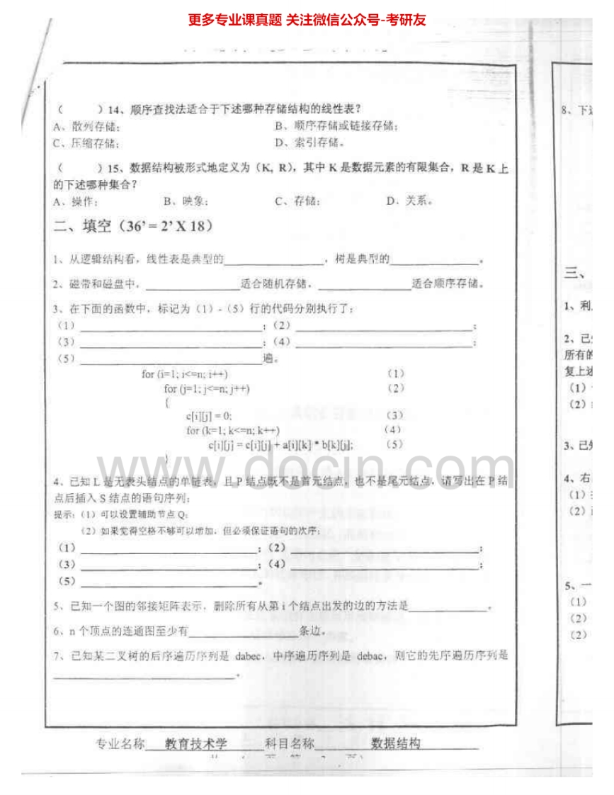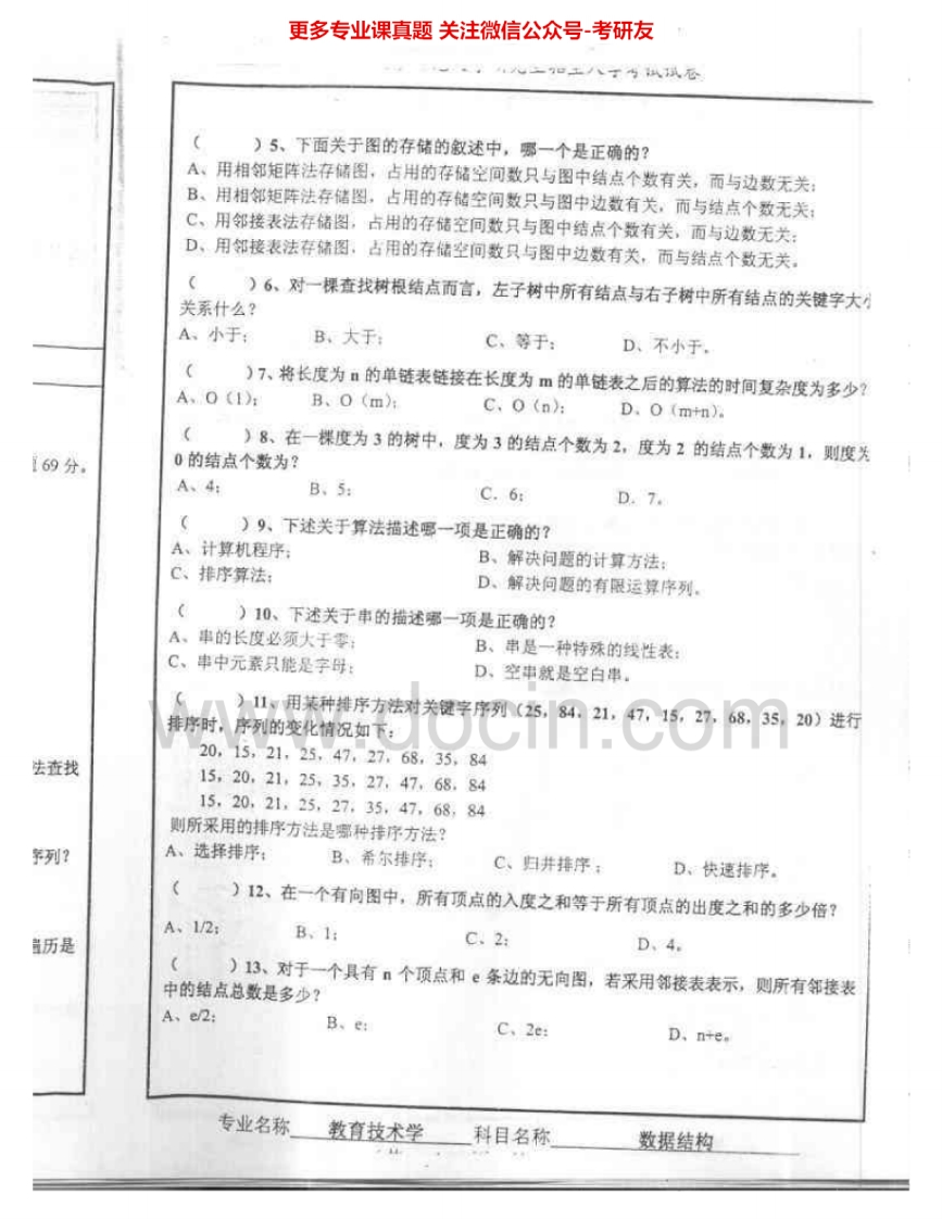 南京师范大学829数据结构2005-2009、2012-2015考研真题汇编.Image.Marked-学习资源网 - 分享优质学习资料