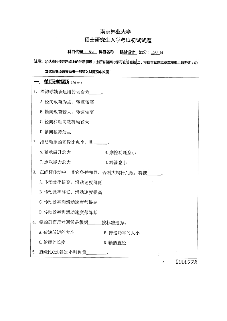 南京林业大学831机械设计历年考研真题汇编-学习资源网 - 分享优质学习资料