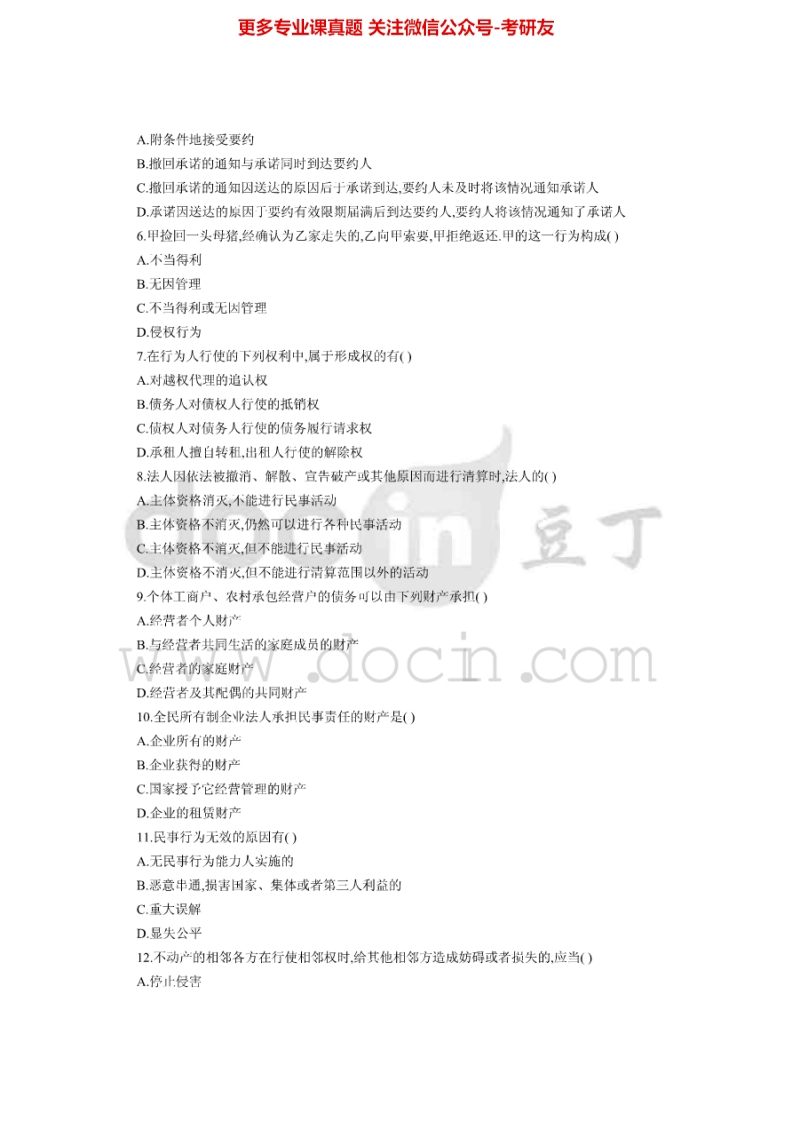 南京师范大学民法学与刑法学(2003-2014)考研真题汇编.Image.Marked猴哥6个月前发布关注私信19.67MB64页06033南京师范大学民法学与刑法学(2003-2014)考研真题汇编.Image.Marked此内容为免费资源,请登录后查看¥0 登录查看免费资源 第1页 / 共64页 第2页 / 共64页 第3页 / 共64页 该文档为免费文档,您可直接下载完整版进行阅读 © 版权声明文章版权归作者所有,未经允许请勿转载。THE END考研专业课 喜欢就支持一下吧点赞33赞赏 分享QQ空间微博QQ好友海报分享复制链接收藏