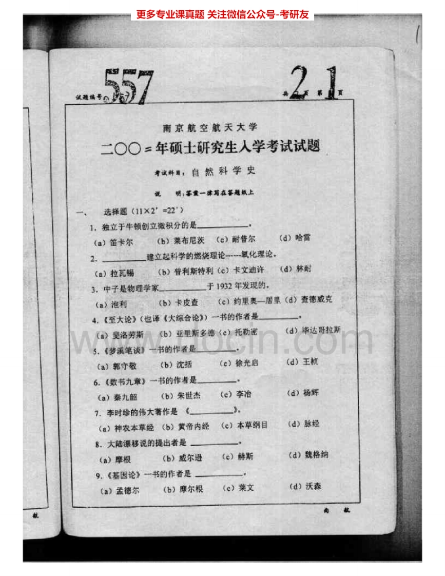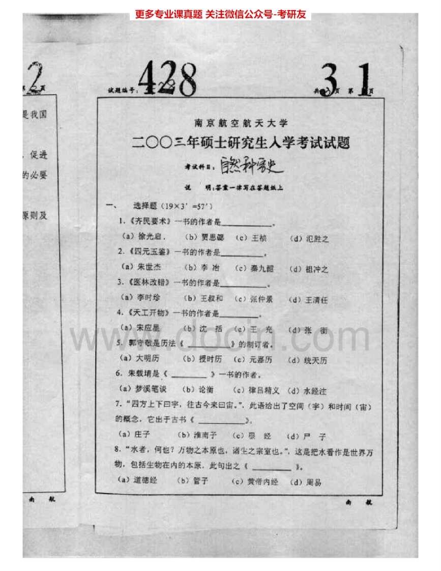 南京航空航天大学828自然科学史2002-2005、2009-2010、2012-2015考研真题汇编.Image.Marked-学习资源网 - 分享优质学习资料