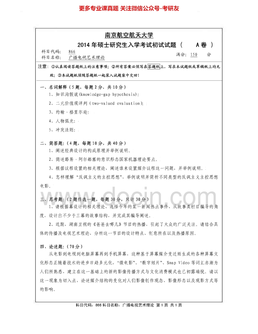 南京航空航天大学866广播电视艺术理论2009-2010、2012-2015考研真题汇编.Image.Marked