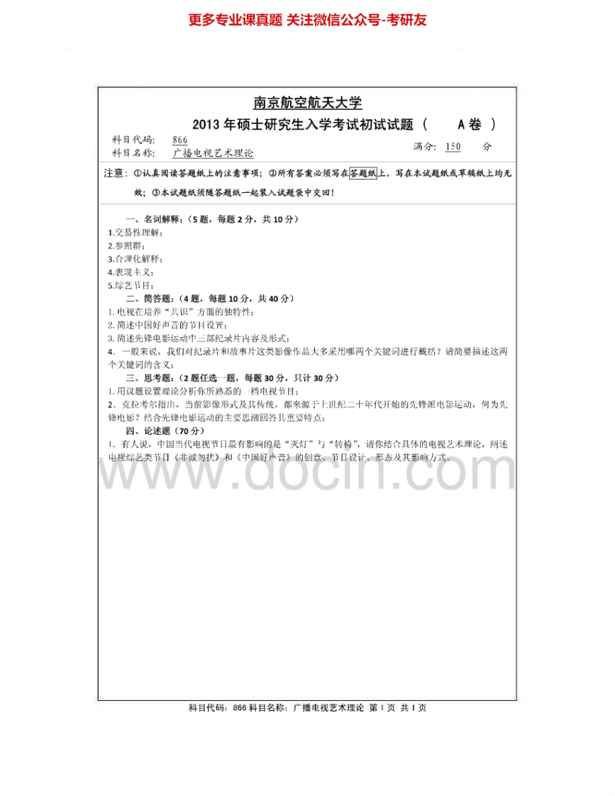 南京航空航天大学866广播电视艺术理论2009-2010、2012-2015考研真题汇编.Image.Marked-学习资源网 - 分享优质学习资料