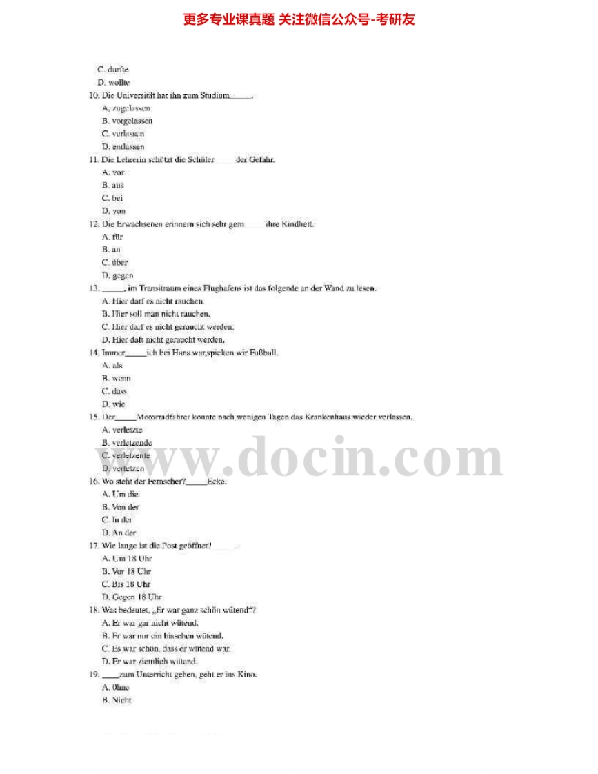 南开大学255二外德语2001-2006、2010-2011考研真题汇编.Image.Marked猴哥6个月前发布关注私信17.43MB57页06839南开大学255二外德语2001-2006、2010-2011考研真题汇编.Image.Marked此内容为免费资源,请登录后查看¥0 登录查看免费资源 第1页 / 共57页 第2页 / 共57页 第3页 / 共57页 该文档为免费文档,您可直接下载完整版进行阅读 © 版权声明文章版权归作者所有,未经允许请勿转载。THE END考研专业课 喜欢就支持一下吧点赞39赞赏 分享QQ空间微博QQ好友海报分享复制链接收藏