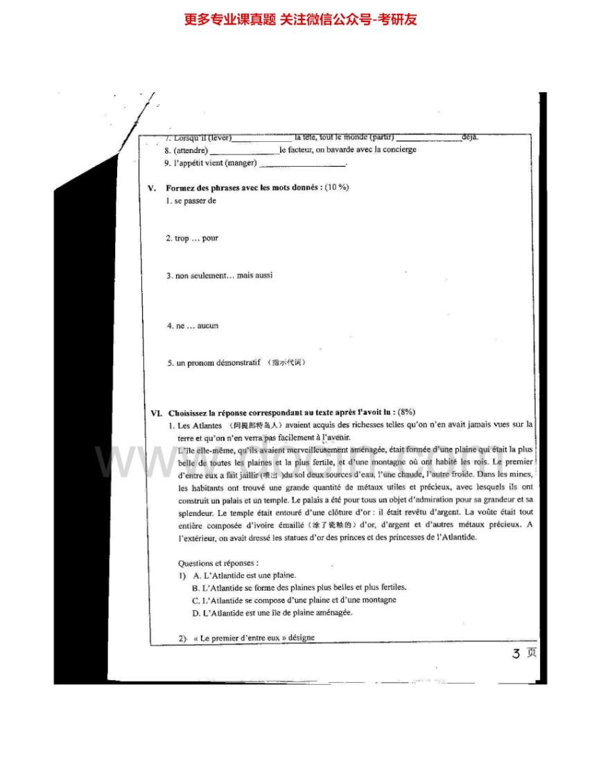 南开大学254二外法语003-2006、2010-2012考研真题汇编.Image.Marked猴哥6个月前发布关注私信9.97MB29页04056南开大学254二外法语003-2006、2010-2012考研真题汇编.Image.Marked此内容为免费资源,请登录后查看¥0 登录查看免费资源 第1页 / 共29页 第2页 / 共29页 第3页 / 共29页 该文档为免费文档,您可直接下载完整版进行阅读 © 版权声明文章版权归作者所有,未经允许请勿转载。THE END考研专业课 喜欢就支持一下吧点赞56赞赏 分享QQ空间微博QQ好友海报分享复制链接收藏