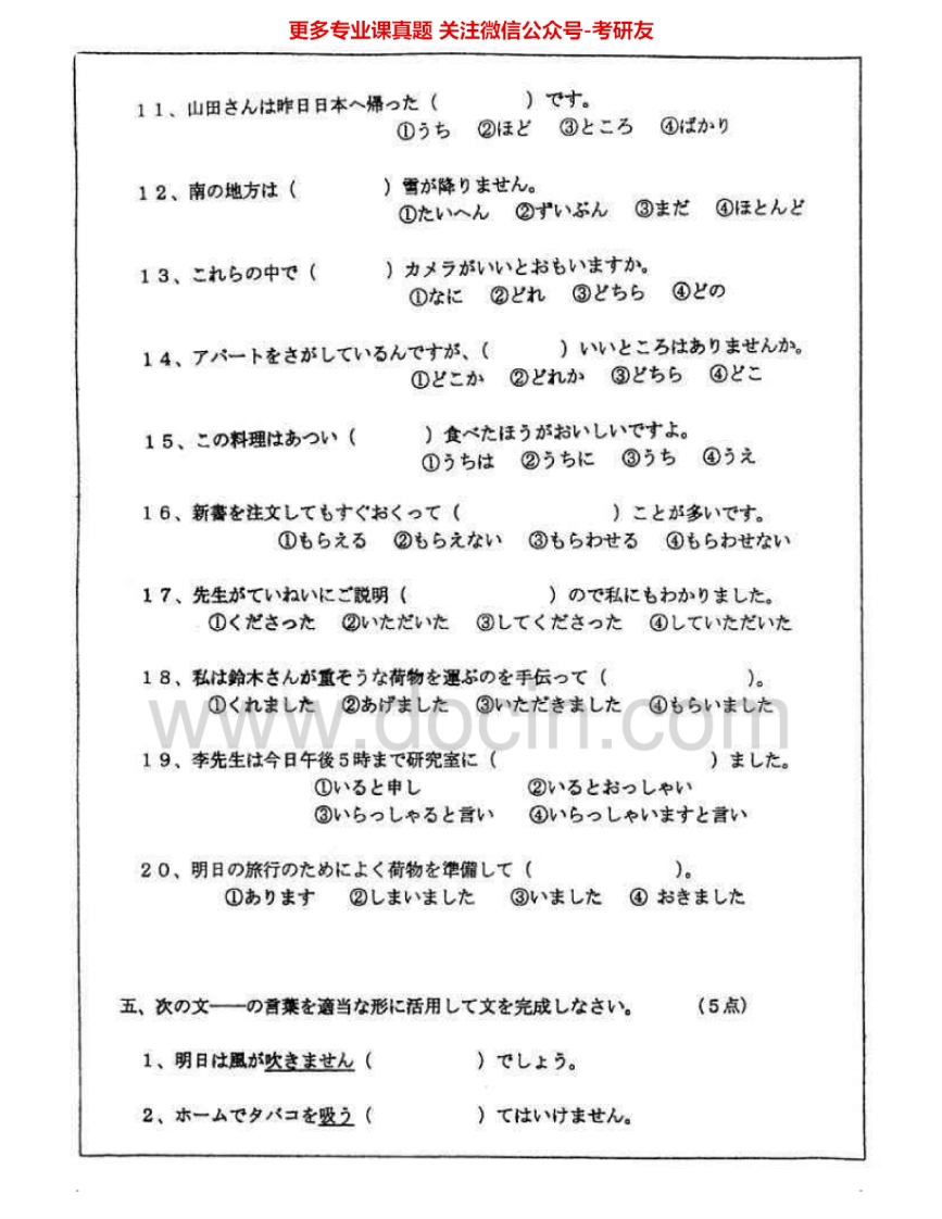 南开大学253二外日语2000-2009、2011考研真题汇编.Image.Marked猴哥6个月前发布关注私信22.11MB62页05459南开大学253二外日语2000-2009、2011考研真题汇编.Image.Marked此内容为免费资源,请登录后查看¥0 登录查看免费资源 第1页 / 共62页 第2页 / 共62页 第3页 / 共62页 该文档为免费文档,您可直接下载完整版进行阅读 © 版权声明文章版权归作者所有,未经允许请勿转载。THE END考研专业课 喜欢就支持一下吧点赞59赞赏 分享QQ空间微博QQ好友海报分享复制链接收藏