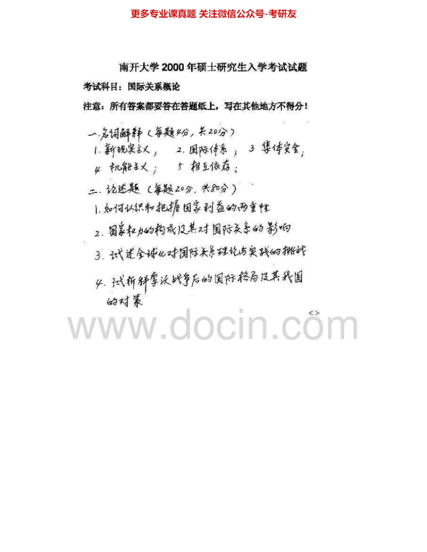 南开大学738国际关系概论1999-2000考研真题汇编.Image.Marked猴哥6个月前发布关注私信0.22MB2页04957南开大学738国际关系概论1999-2000考研真题汇编.Image.Marked此内容为免费资源,请登录后查看¥0 登录查看免费资源 第1页 / 共2页 第2页 / 共2页 已完成全部阅读,共2页 © 版权声明文章版权归作者所有,未经允许请勿转载。THE END考研专业课 喜欢就支持一下吧点赞57赞赏 分享QQ空间微博QQ好友海报分享复制链接收藏