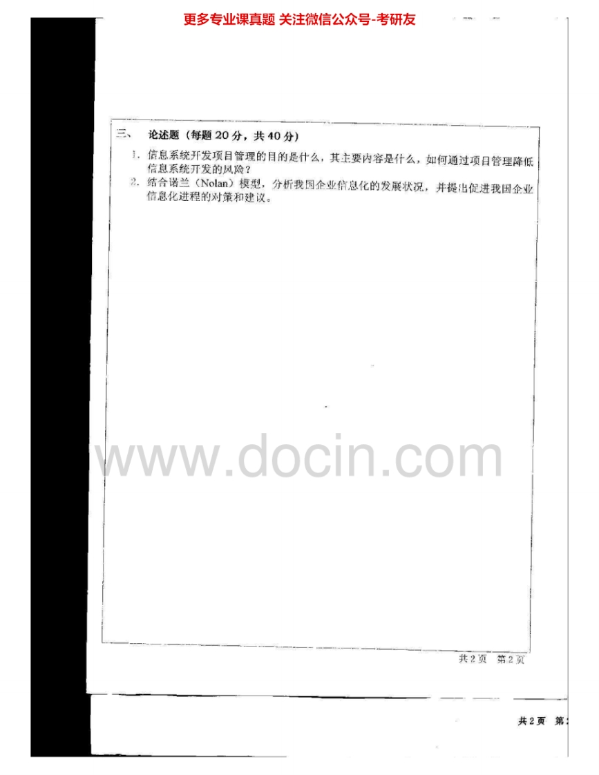 南开大学833管理信息系统2003-2005、2007、2011考研真题汇编.Image.Marked猴哥6个月前发布关注私信5.38MB12页04422南开大学833管理信息系统2003-2005、2007、2011考研真题汇编.Image.Marked此内容为免费资源,请登录后查看¥0 登录查看免费资源 第1页 / 共12页 第2页 / 共12页 第3页 / 共12页 该文档为免费文档,您可直接下载完整版进行阅读 © 版权声明文章版权归作者所有,未经允许请勿转载。THE END《南开大学》(833)中国古代文学考研资料考研专业课 喜欢就支持一下吧点赞22赞赏 分享QQ空间微博QQ好友海报分享复制链接收藏