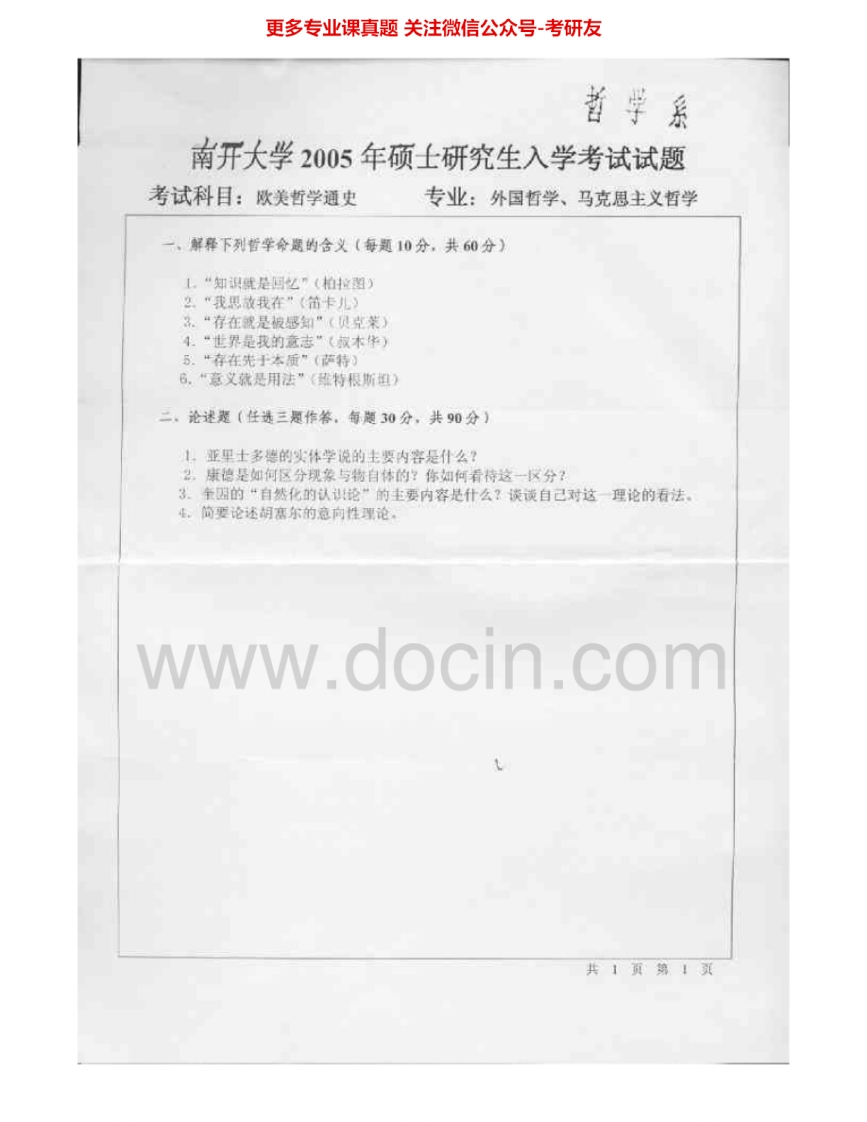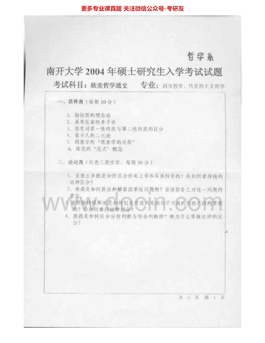 南开大学879欧美哲学通史2003-2005、2008-2011考研真题汇编.Image.Marked猴哥6个月前发布关注私信1.45MB7页09346南开大学879欧美哲学通史2003-2005、2008-2011考研真题汇编.Image.Marked此内容为免费资源,请登录后查看¥0 登录查看免费资源 第1页 / 共7页 第2页 / 共7页 第3页 / 共7页 该文档为免费文档,您可直接下载完整版进行阅读 © 版权声明文章版权归作者所有,未经允许请勿转载。THE END《南开大学》(879)管理综合考研资料考研专业课 喜欢就支持一下吧点赞46赞赏 分享QQ空间微博QQ好友海报分享复制链接收藏