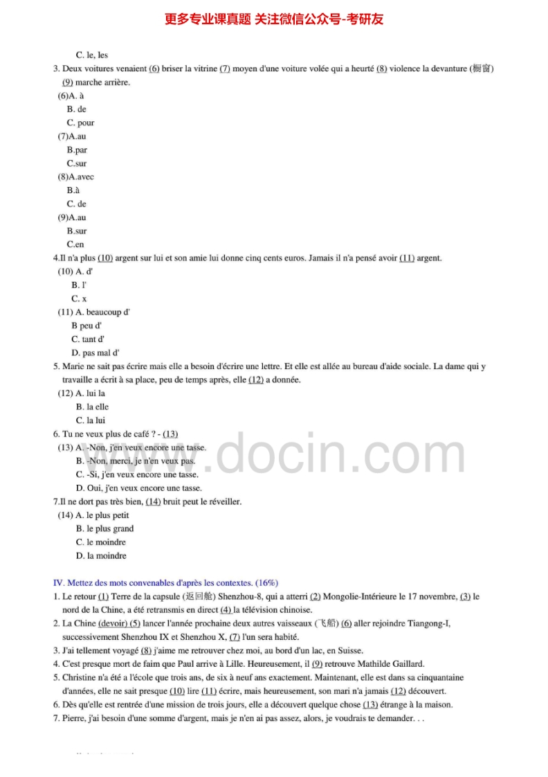 南开大学二外法语2011-2012年考研真题及参考答案.Image.Marked猴哥6个月前发布关注私信2.98MB10页06420南开大学二外法语2011-2012年考研真题及参考答案.Image.Marked此内容为免费资源,请登录后查看¥0 登录查看免费资源 第1页 / 共10页 第2页 / 共10页 第3页 / 共10页 该文档为免费文档,您可直接下载完整版进行阅读 © 版权声明文章版权归作者所有,未经允许请勿转载。THE END考研专业课 喜欢就支持一下吧点赞20赞赏 分享QQ空间微博QQ好友海报分享复制链接收藏