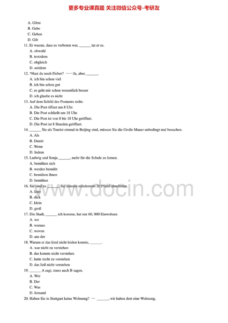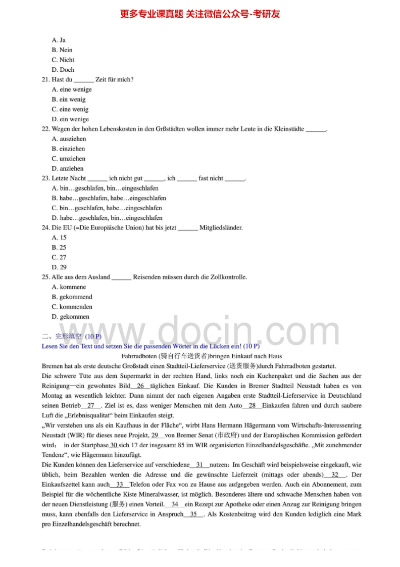 南开大学德语2001-2006、2010-2012考研真题汇编.Image.Marked猴哥6个月前发布关注私信20.25MB65页03216南开大学德语2001-2006、2010-2012考研真题汇编.Image.Marked此内容为免费资源,请登录后查看¥0 登录查看免费资源 第1页 / 共65页 第2页 / 共65页 第3页 / 共65页 该文档为免费文档,您可直接下载完整版进行阅读 © 版权声明文章版权归作者所有,未经允许请勿转载。THE END考研专业课 喜欢就支持一下吧点赞16赞赏 分享QQ空间微博QQ好友海报分享复制链接收藏