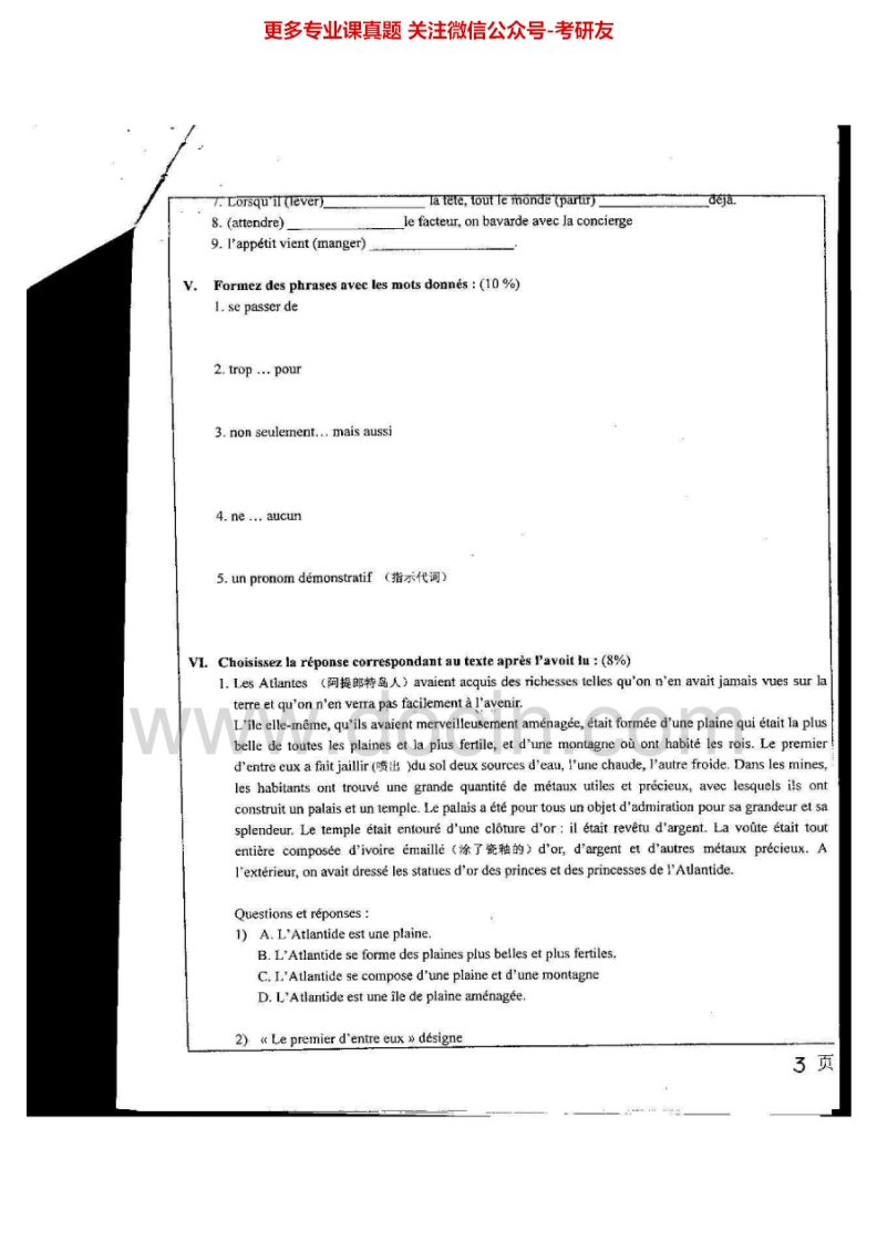 南开大学二外法语历年真题2003-2006、2010-2011考研真题汇编.Image.Marked猴哥6个月前发布关注私信12.13MB24页09555南开大学二外法语历年真题2003-2006、2010-2011考研真题汇编.Image.Marked此内容为免费资源,请登录后查看¥0 登录查看免费资源 第1页 / 共24页 第2页 / 共24页 第3页 / 共24页 该文档为免费文档,您可直接下载完整版进行阅读 © 版权声明文章版权归作者所有,未经允许请勿转载。THE END考研专业课 喜欢就支持一下吧点赞55赞赏 分享QQ空间微博QQ好友海报分享复制链接收藏