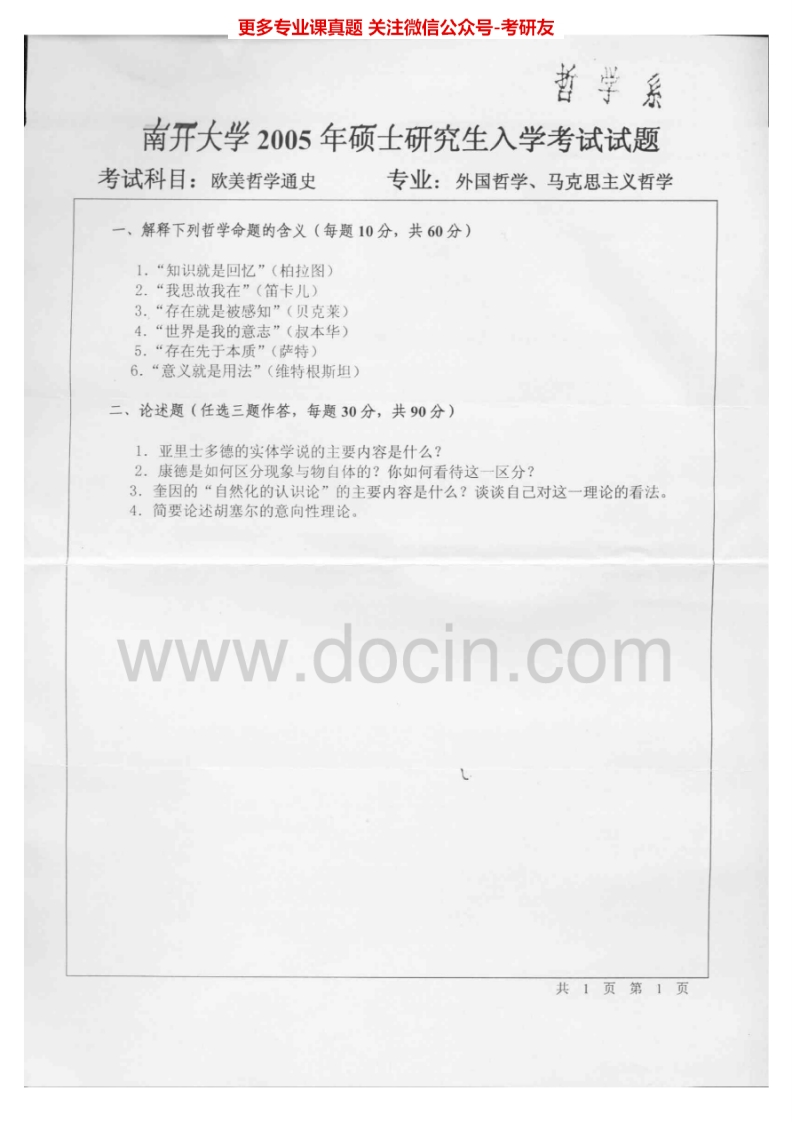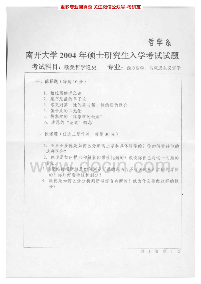 南开大学欧美哲学通史历年真题2003-2005、2008-2012考研真题汇编.Image.Marked猴哥6个月前发布关注私信1.51MB8页03431南开大学欧美哲学通史历年真题2003-2005、2008-2012考研真题汇编.Image.Marked此内容为免费资源,请登录后查看¥0 登录查看免费资源 第1页 / 共8页 第2页 / 共8页 第3页 / 共8页 该文档为免费文档,您可直接下载完整版进行阅读 © 版权声明文章版权归作者所有,未经允许请勿转载。THE END考研专业课 喜欢就支持一下吧点赞31赞赏 分享QQ空间微博QQ好友海报分享复制链接收藏
