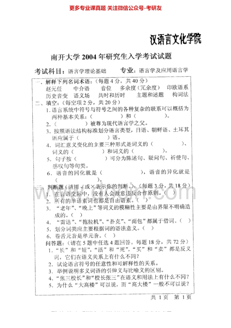 南开大学语言学概论2003-2012考研真题汇编.Image.Marked猴哥6个月前发布关注私信3.98MB10页03527南开大学语言学概论2003-2012考研真题汇编.Image.Marked此内容为免费资源,请登录后查看¥0 登录查看免费资源 第1页 / 共10页 第2页 / 共10页 第3页 / 共10页 该文档为免费文档,您可直接下载完整版进行阅读 © 版权声明文章版权归作者所有,未经允许请勿转载。THE END考研专业课 喜欢就支持一下吧点赞27赞赏 分享QQ空间微博QQ好友海报分享复制链接收藏