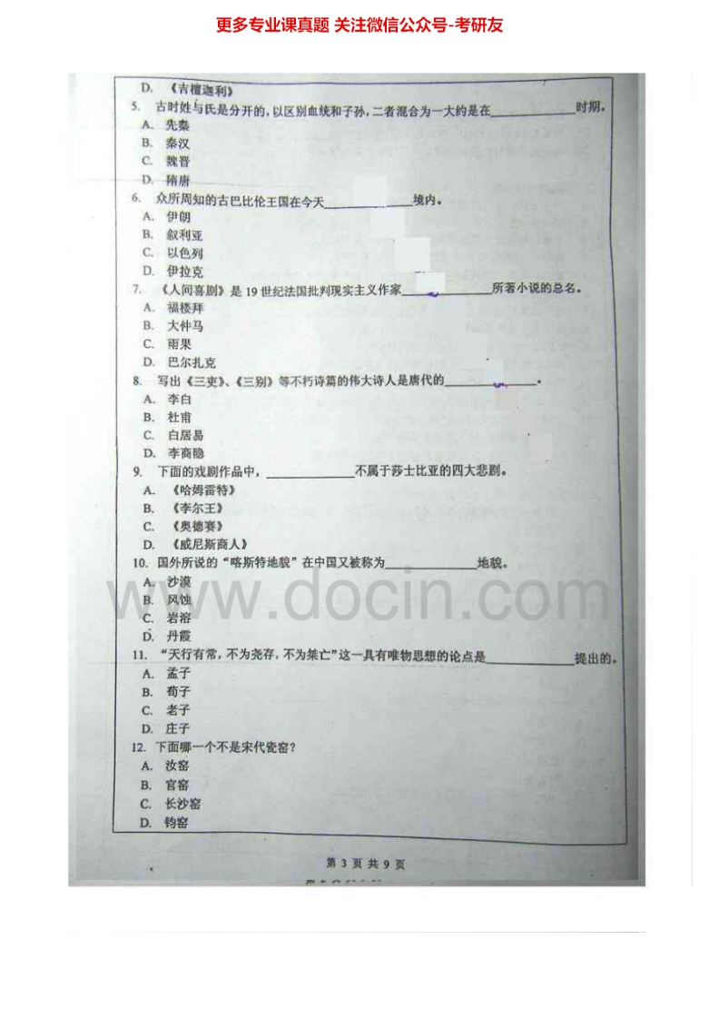 南开大学汉语国际教育基础历年真题2011-2012考研真题汇编.Image.Marked-学习资源网 - 分享优质学习资料