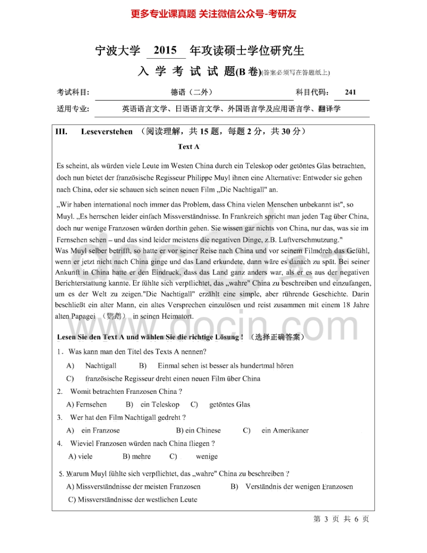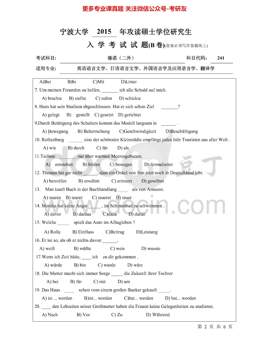 宁波大学241德语(二外)2009-2015其中2009有答案考研真题汇编.Image.Marked猴哥6个月前发布关注私信11.42MB45页07616宁波大学241德语(二外)2009-2015其中2009有答案考研真题汇编.Image.Marked此内容为免费资源,请登录后查看¥0 登录查看免费资源 第1页 / 共45页 第2页 / 共45页 第3页 / 共45页 该文档为免费文档,您可直接下载完整版进行阅读 © 版权声明文章版权归作者所有,未经允许请勿转载。THE END考研专业课 喜欢就支持一下吧点赞16赞赏 分享QQ空间微博QQ好友海报分享复制链接收藏