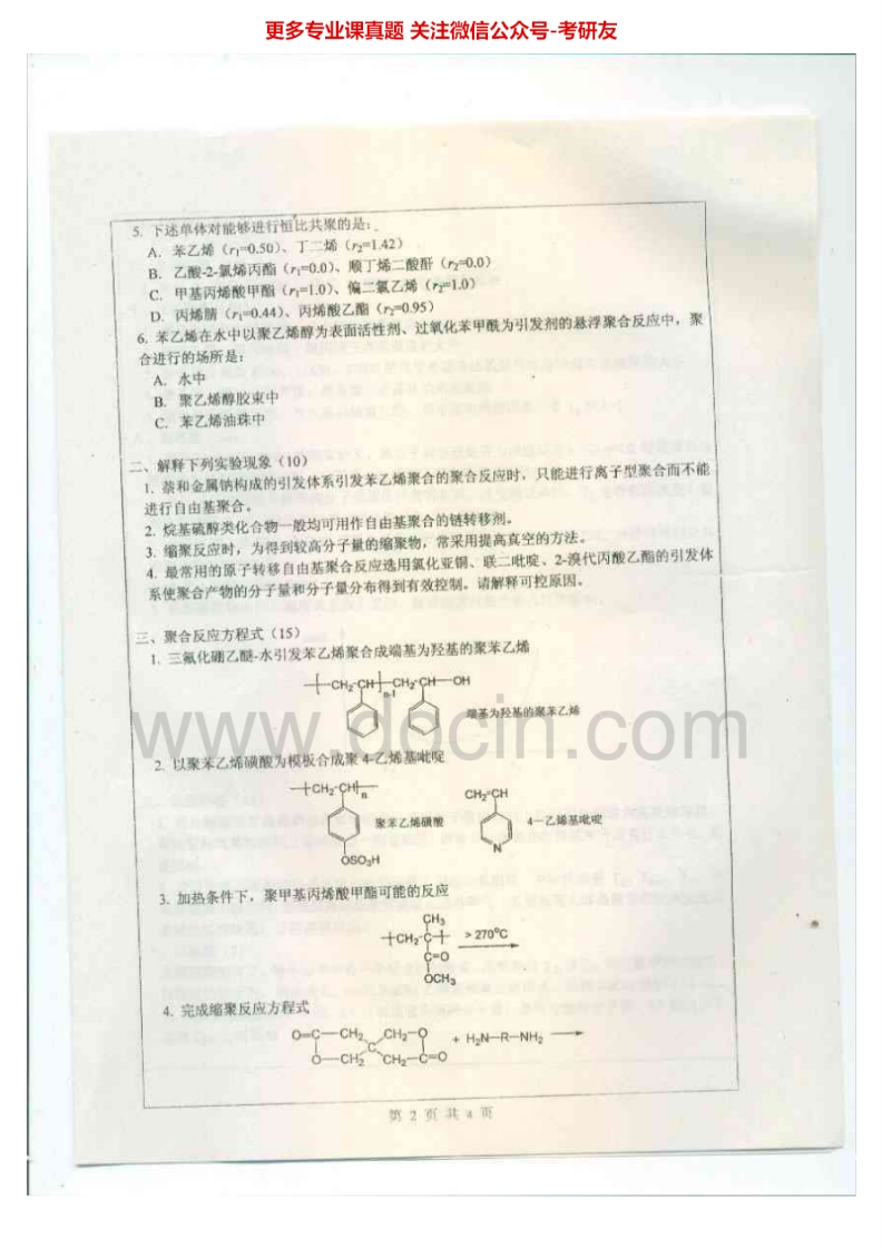 南开大学高分子化学与物理(化学)历年真题2007-2011考研真题汇编.Image.Marked猴哥6个月前发布关注私信8.53MB24页07650南开大学高分子化学与物理(化学)历年真题2007-2011考研真题汇编.Image.Marked此内容为免费资源,请登录后查看¥0 登录查看免费资源 第1页 / 共24页 第2页 / 共24页 第3页 / 共24页 该文档为免费文档,您可直接下载完整版进行阅读 © 版权声明文章版权归作者所有,未经允许请勿转载。THE END考研专业课 喜欢就支持一下吧点赞50赞赏 分享QQ空间微博QQ好友海报分享复制链接收藏