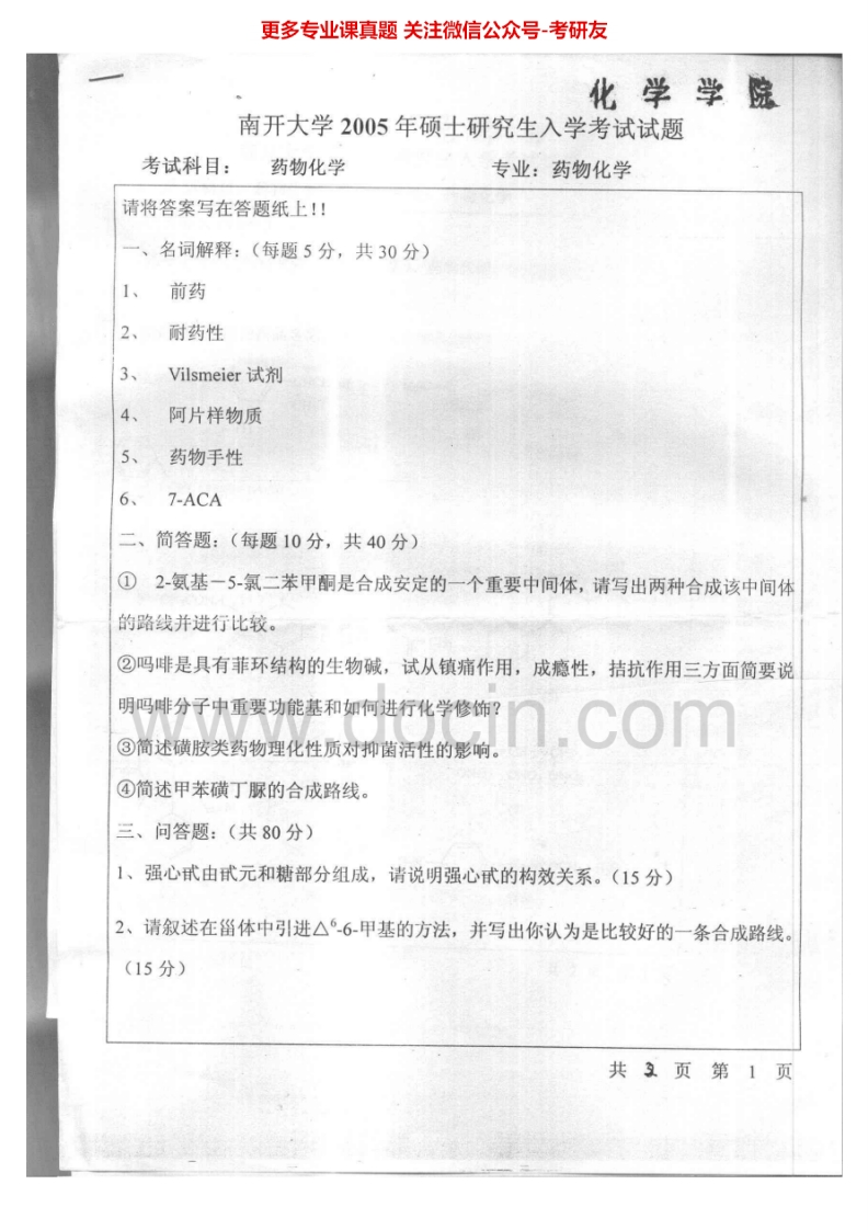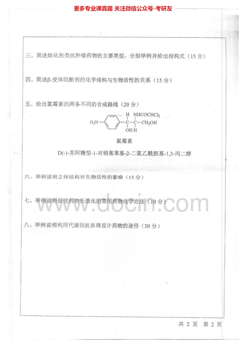 南开大学药物化学历年真题(2004-2012)考研真题汇编.Image.Marked猴哥6个月前发布关注私信8.39MB54页03156南开大学药物化学历年真题(2004-2012)考研真题汇编.Image.Marked此内容为免费资源,请登录后查看¥0 登录查看免费资源 第1页 / 共54页 第2页 / 共54页 第3页 / 共54页 该文档为免费文档,您可直接下载完整版进行阅读 © 版权声明文章版权归作者所有,未经允许请勿转载。THE END考研专业课 喜欢就支持一下吧点赞56赞赏 分享QQ空间微博QQ好友海报分享复制链接收藏