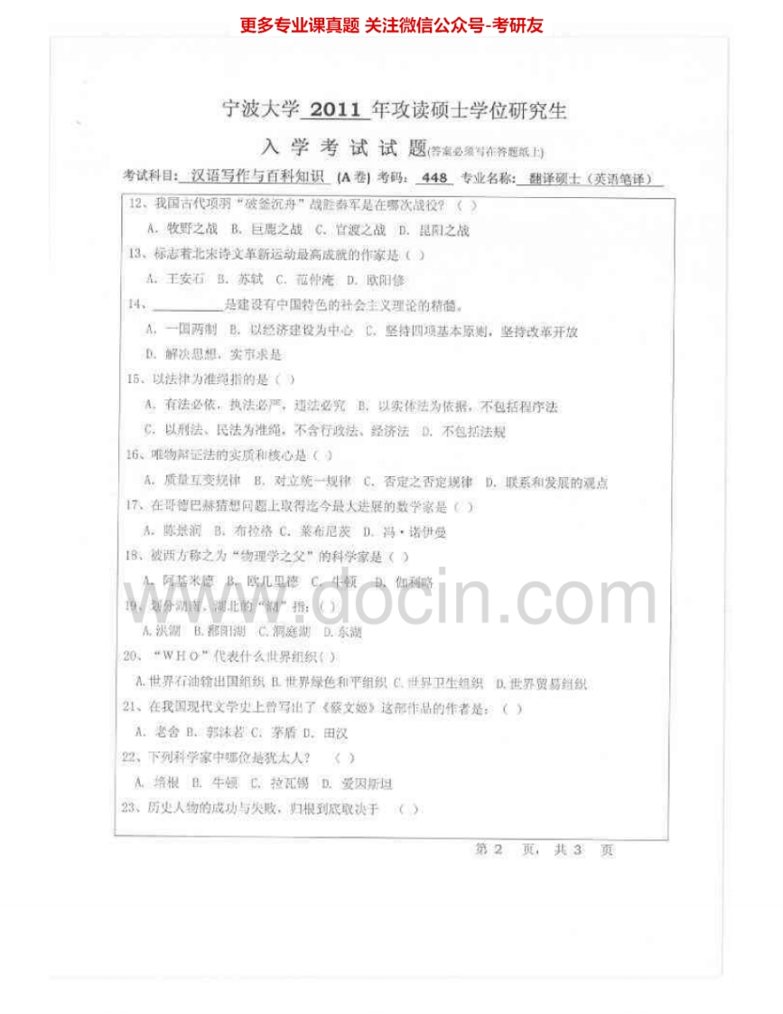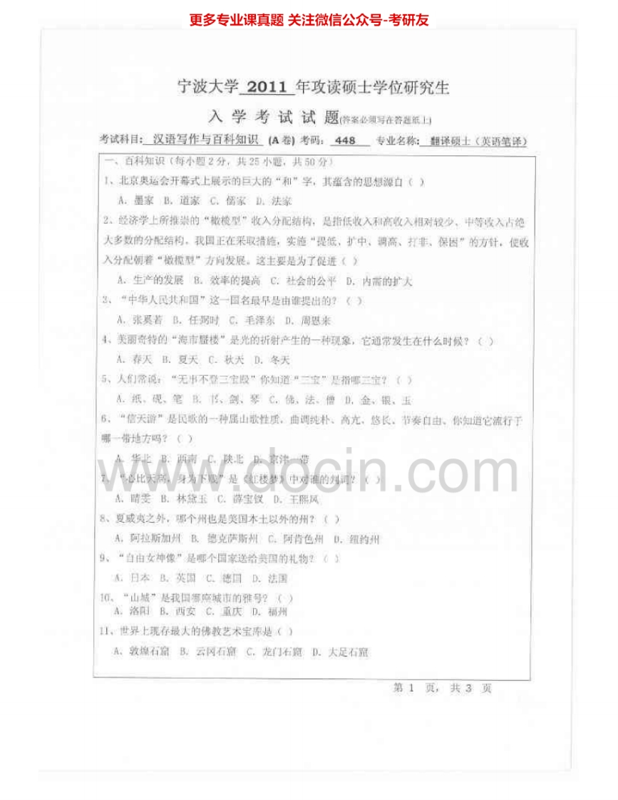 宁波大学448汉语写作与百科知识2011-2015考研真题汇编.Image.Marked-学习资源网 - 分享优质学习资料