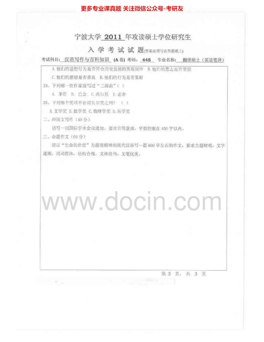 宁波大学448汉语写作与百科知识2011-2015考研真题汇编.Image.Marked