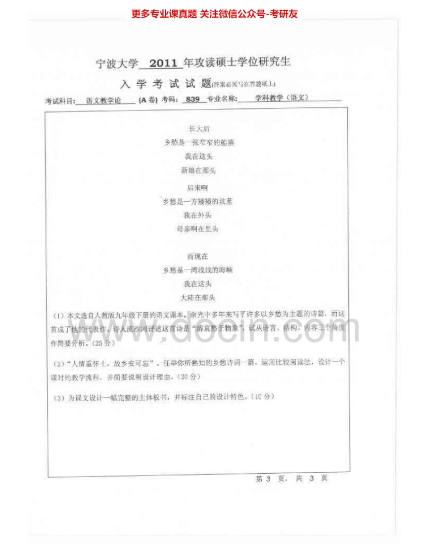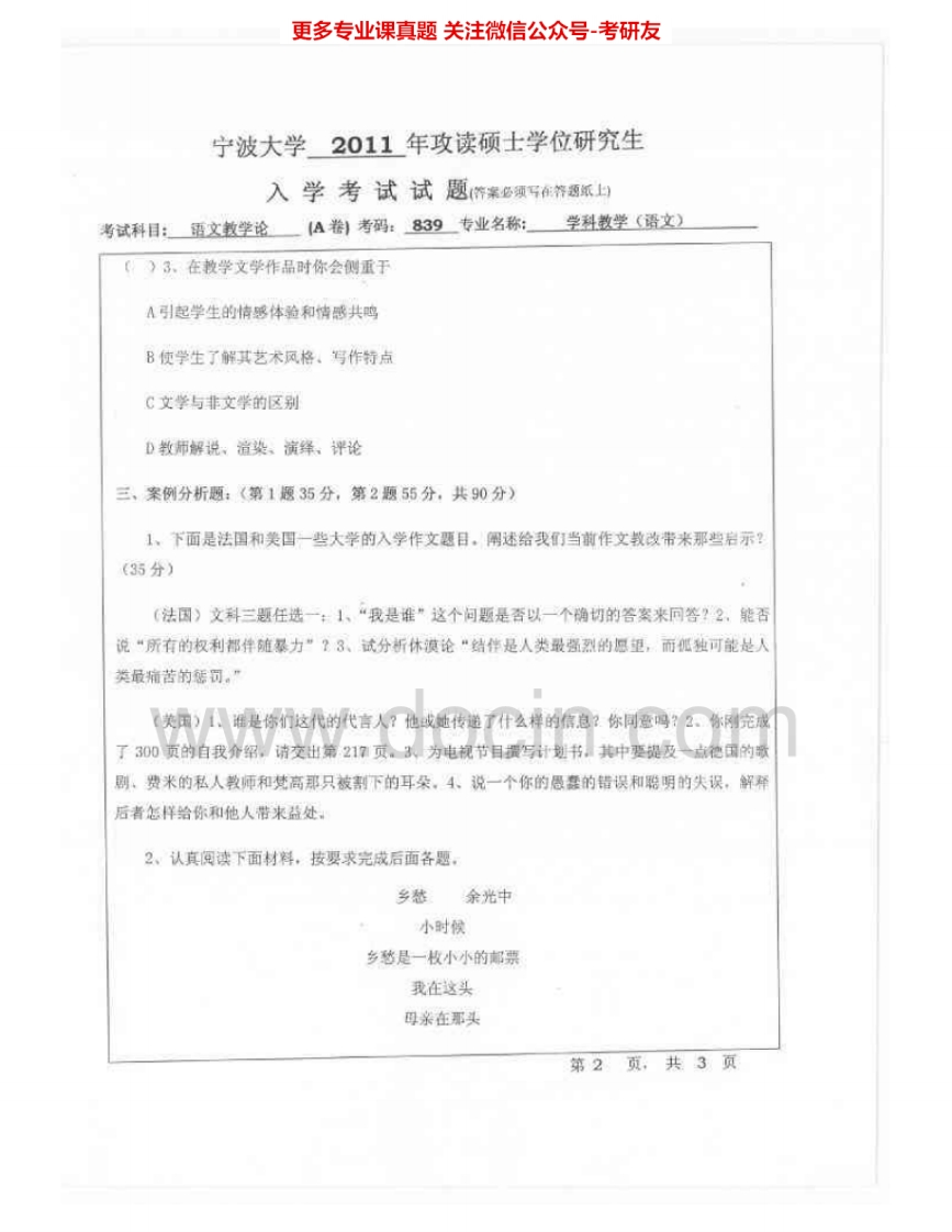 宁波大学834语文教学论2011-2015考研真题汇编.Image.Marked猴哥6个月前发布关注私信0.80MB7页06718宁波大学834语文教学论2011-2015考研真题汇编.Image.Marked此内容为免费资源,请登录后查看¥0 登录查看免费资源 第1页 / 共7页 第2页 / 共7页 第3页 / 共7页 该文档为免费文档,您可直接下载完整版进行阅读 © 版权声明文章版权归作者所有,未经允许请勿转载。THE END考研专业课 喜欢就支持一下吧点赞18赞赏 分享QQ空间微博QQ好友海报分享复制链接收藏