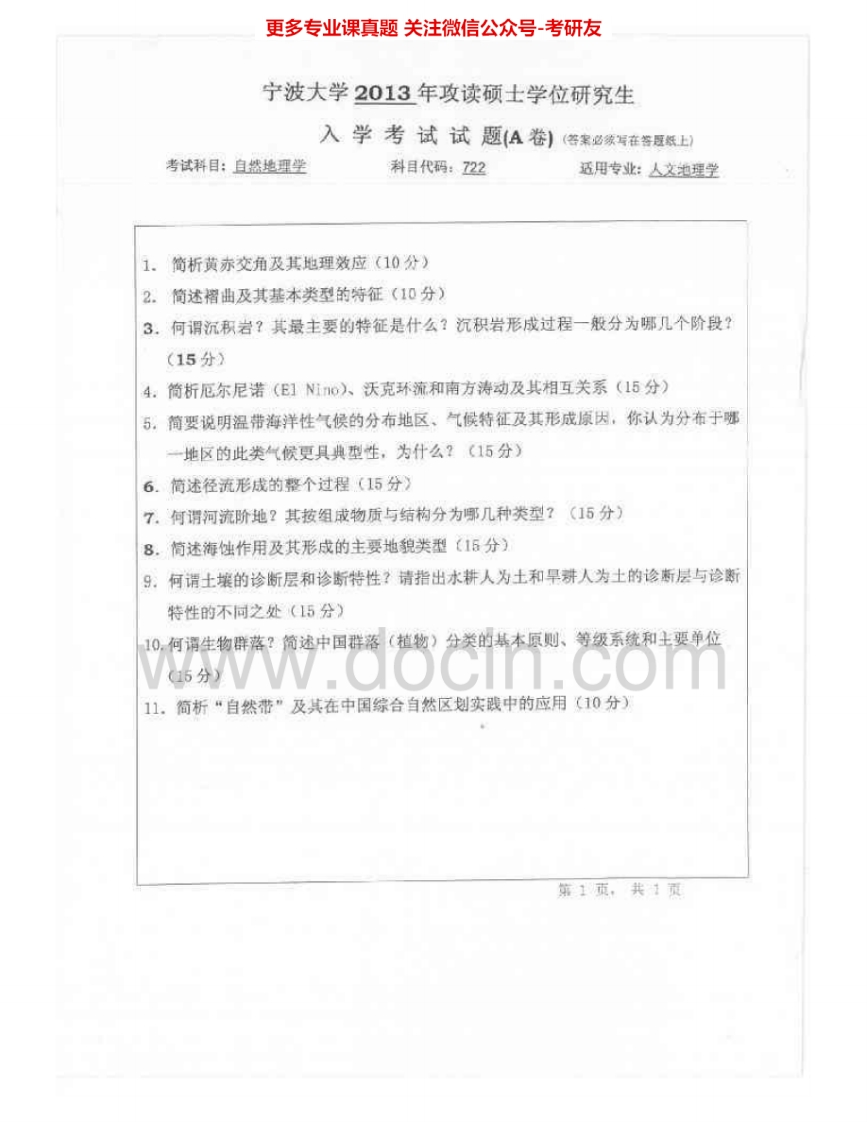 宁波大学722自然地理学2012-2015考研真题汇编.Image.Marked-学习资源网 - 分享优质学习资料